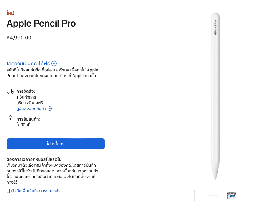 ลิงก์สั่งซื้อ Apple Pencil Pro : https://www.apple.com/th/shop/product/MX2D3ZA/A/
