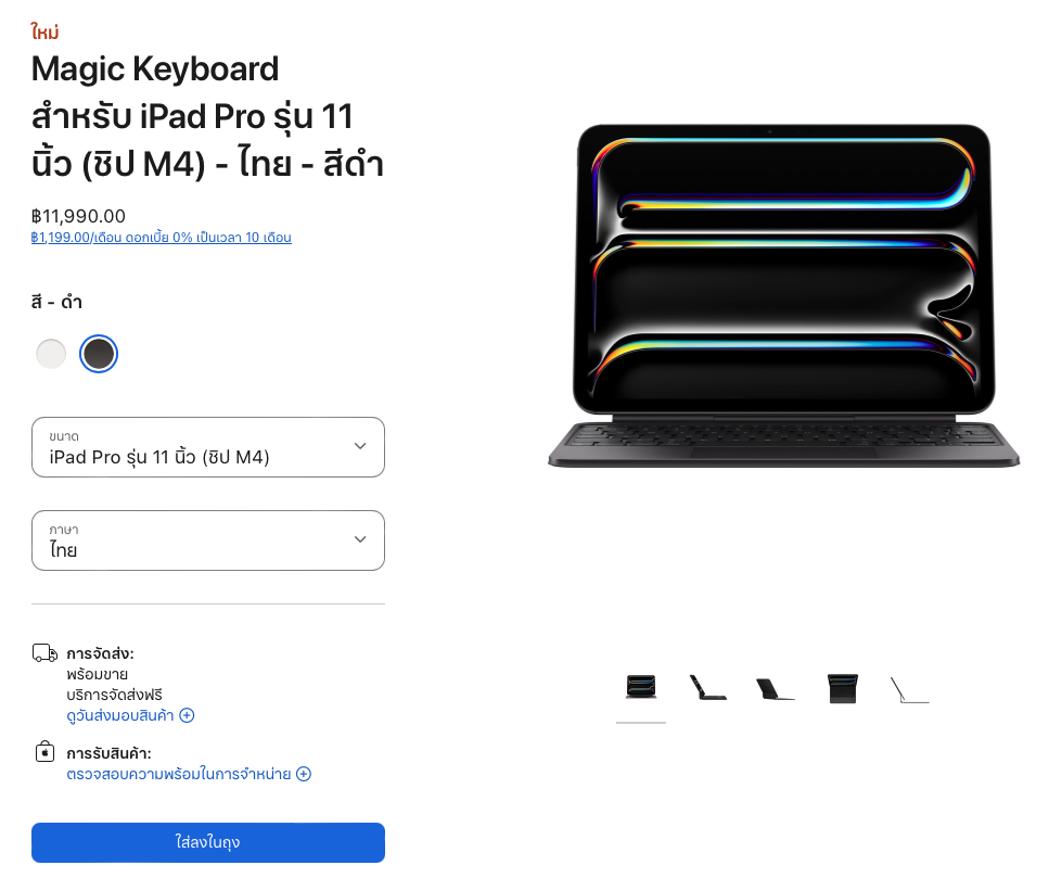 - Magic Keyboard สำหรับ iPad Pro ชิป M4 รุ่น 11″ ราคา 11,990 บาท