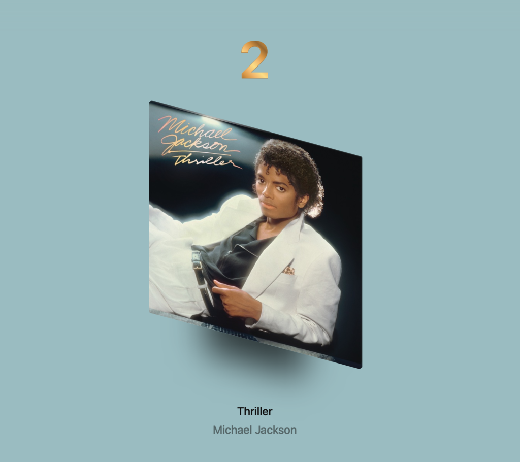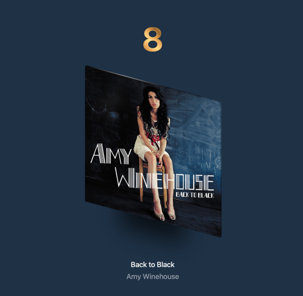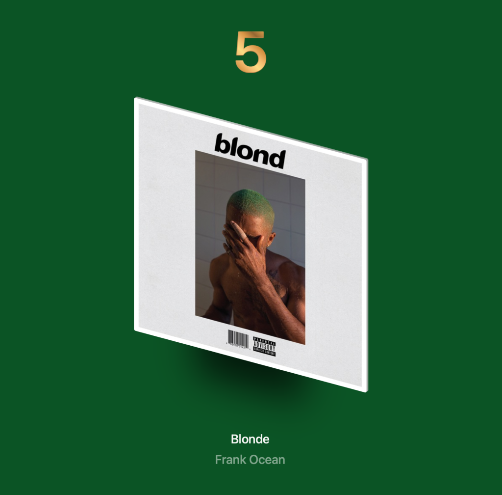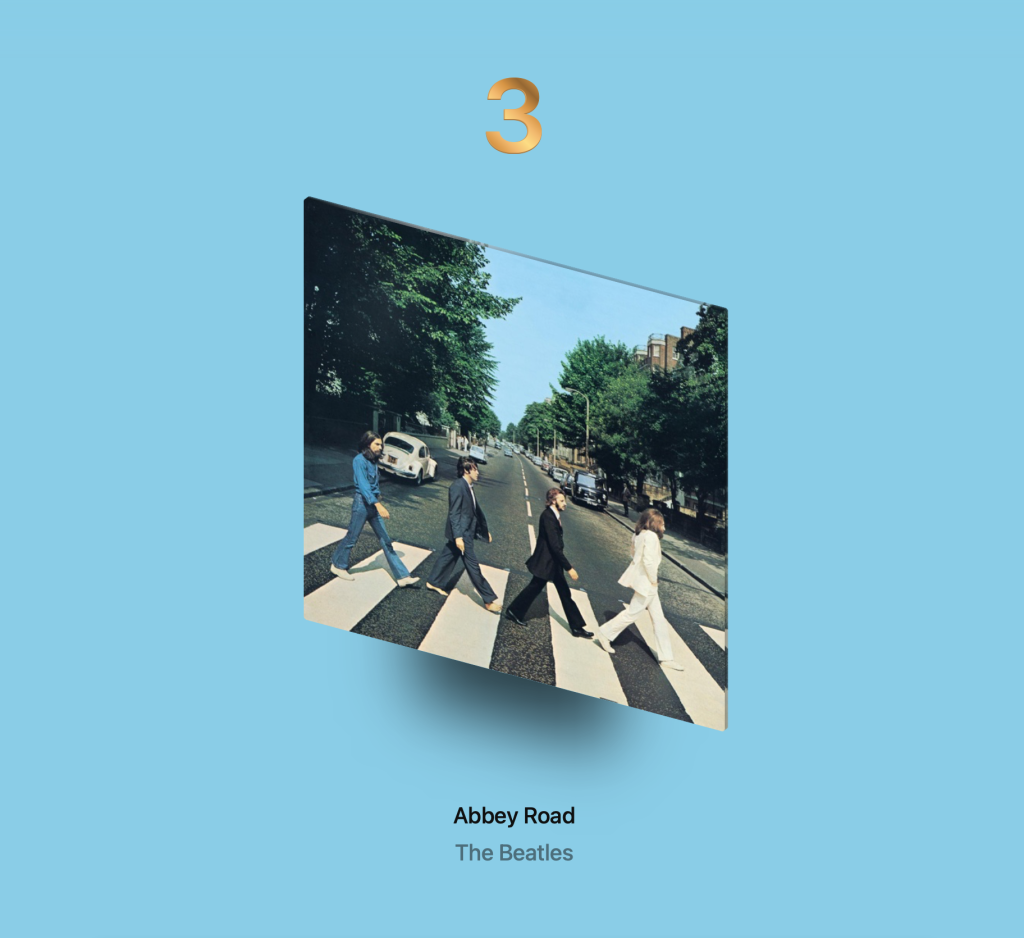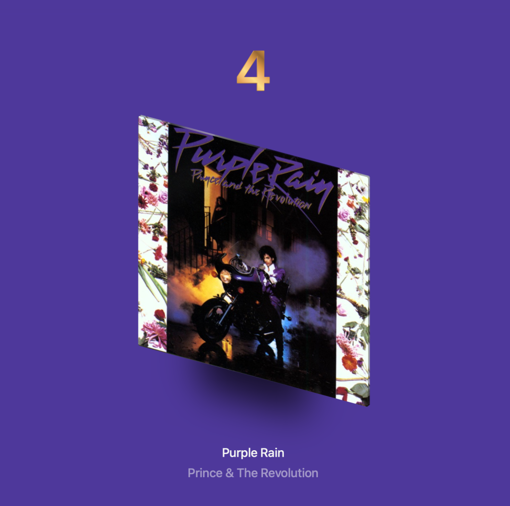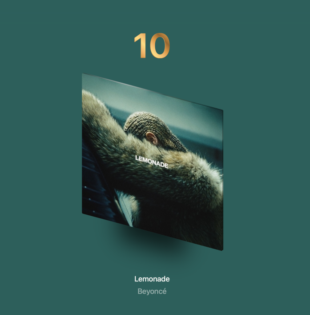 Apple Music ได้จัดอันดับ 100 อัลบั้มยอดเยี่ยมตลอดกาล โดยขั้นตอนการคัดเลือกนี้ มาจากผู้เชี่ยวชาญของ Apple Music ร่วมกับศิลปิน นักแต่งเพลง โปรดิวเซอร์ และบุคลากรในวงการเพลง ซึ่งถือเป็นการจัดอันดับที่ทันสมัย ในมุมมองศตวรรษที่ 21 โดยไม่ขึ้นอยู่กับสถิติการฟังเพลงแบบสตรีมมิ่ง