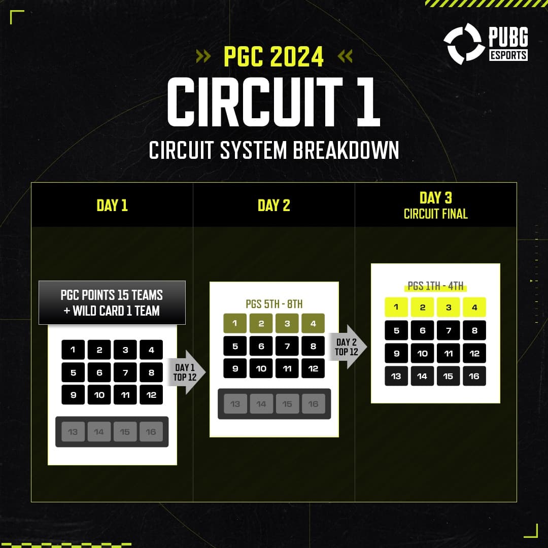 - จะนำเอา 12 ทีมที่ทำคะแนนได้ดีที่สุดวันที่สองของรอบ Circuit 2 มาเจอกับทีมที่อันดับ 1-4 จาก Circuit 1