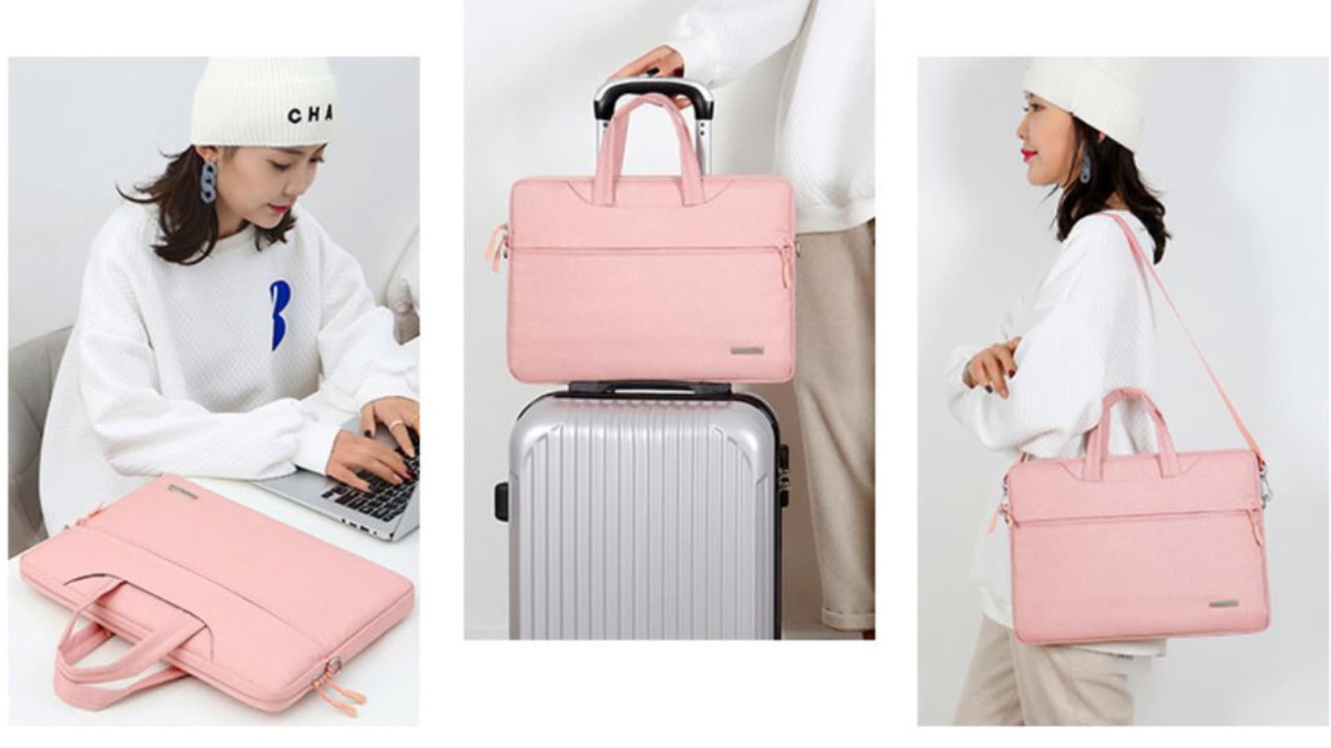 กระเป๋า MacBook สีหวาน เหมาะกับสาว ๆ มาในสีพาสเทล ดีไซน์มินิมอล จุดเด่นคือมีสายสะพายข้างมาให้ด้วย ตัวสายสามารถถอดออกได้ และเขาแถมกระเป็าใบเล็กมาให้ใส่ของเพิ่มด้วยนะ