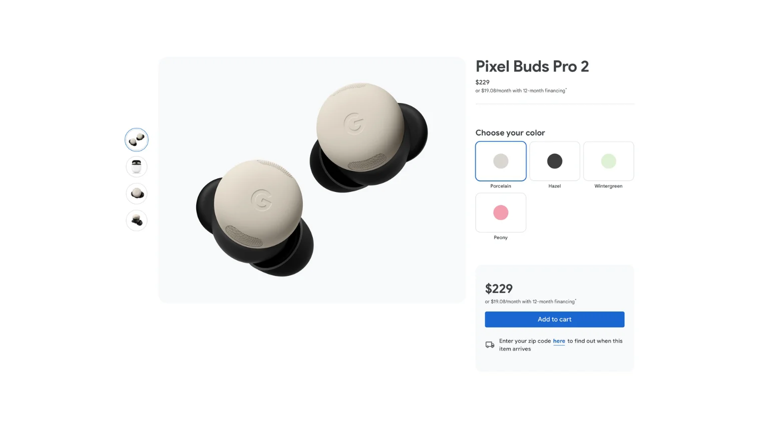 Google Pixel Buds Pro 2 เริ่มเปิดให้พรีออเดอร์แล้วในสหรัฐอเมริกา โดยมีให้เลือกทั้งหมด 4 สี ประกอบไปด้วย สีขาวครีม Porcelain, สีดำ Hazel, สีเขียว Wintergreen และสีชมพู Peony ส่วนราคาเปิดมาที่ 229 เหรียญฯ หรือประมาณ 8,015 บาท (ราคานี้ยังไม่รวมภาษี)
