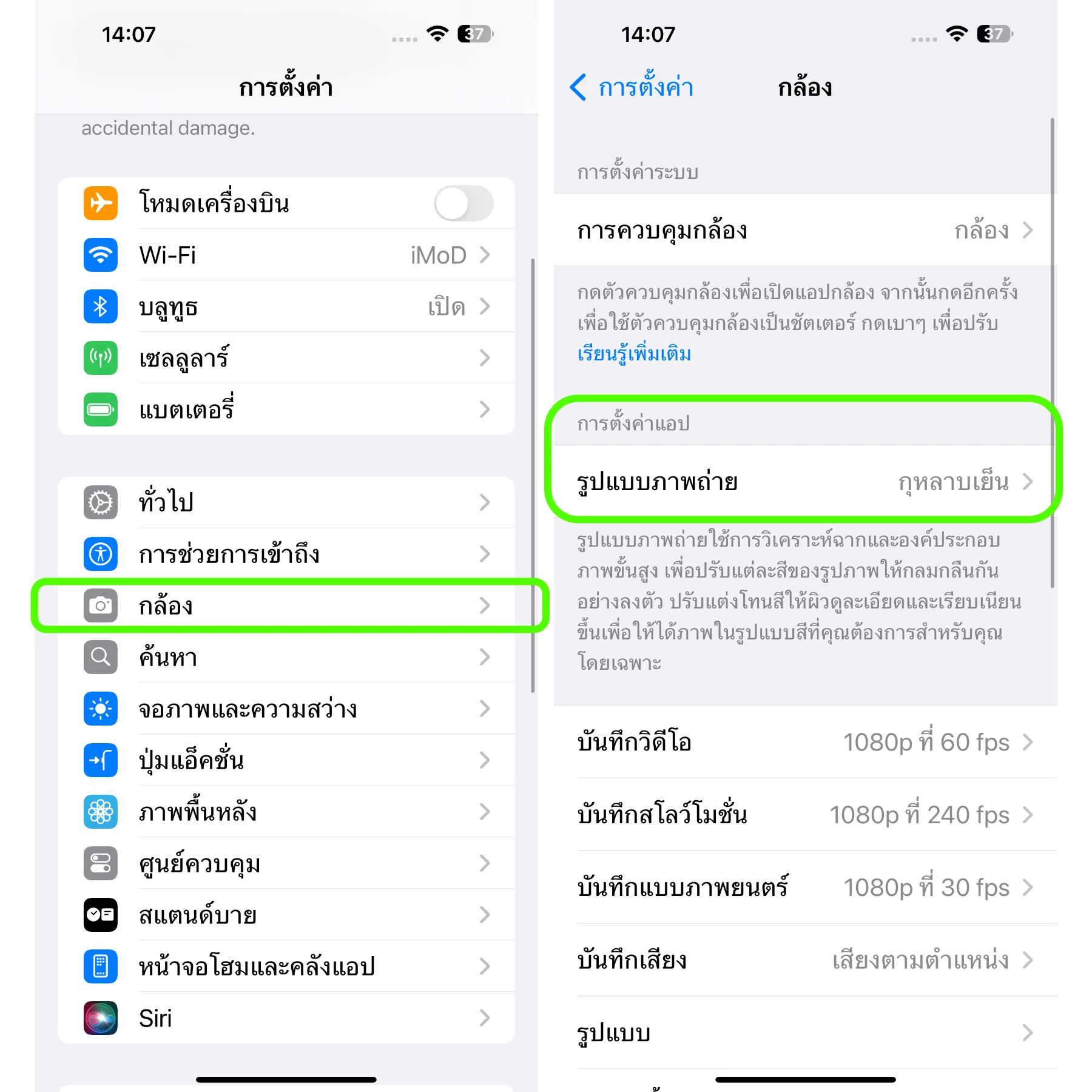 เข้าไปที่การตั้งค่า > กล้อง > รูปแบบภาพถ่าย
