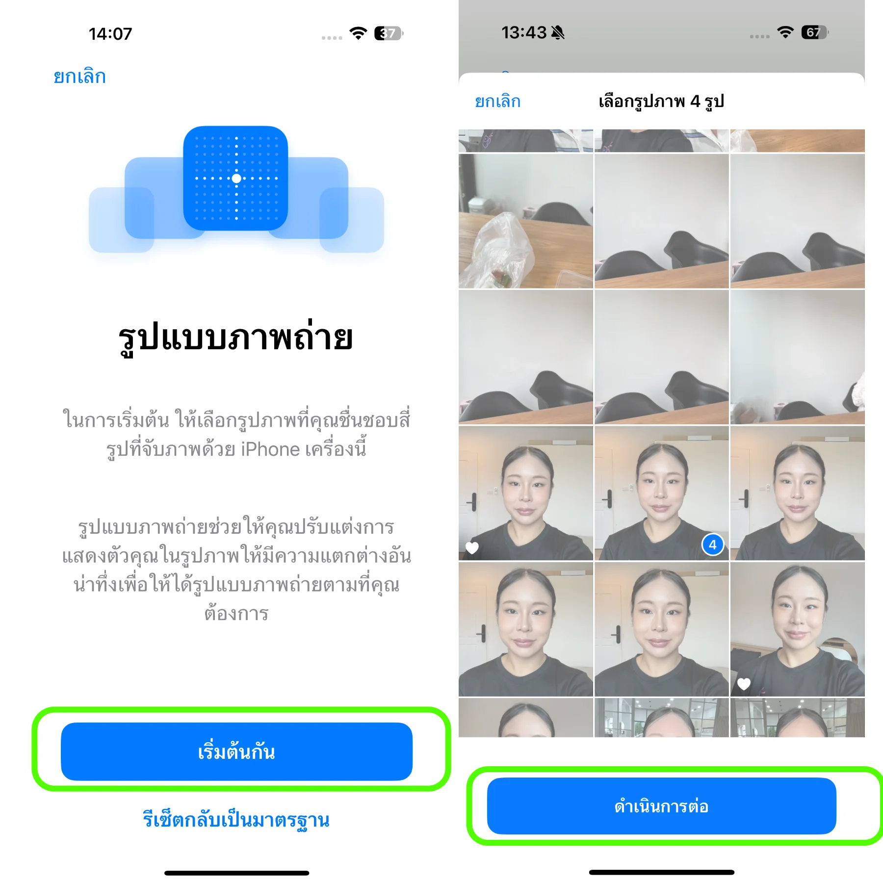 กด “เริ่มต้นกัน”> เลือก 4 ภาพที่ใกล้เคียงกันเพื่อดูตัวอย่างการคุมโทนของคุณ