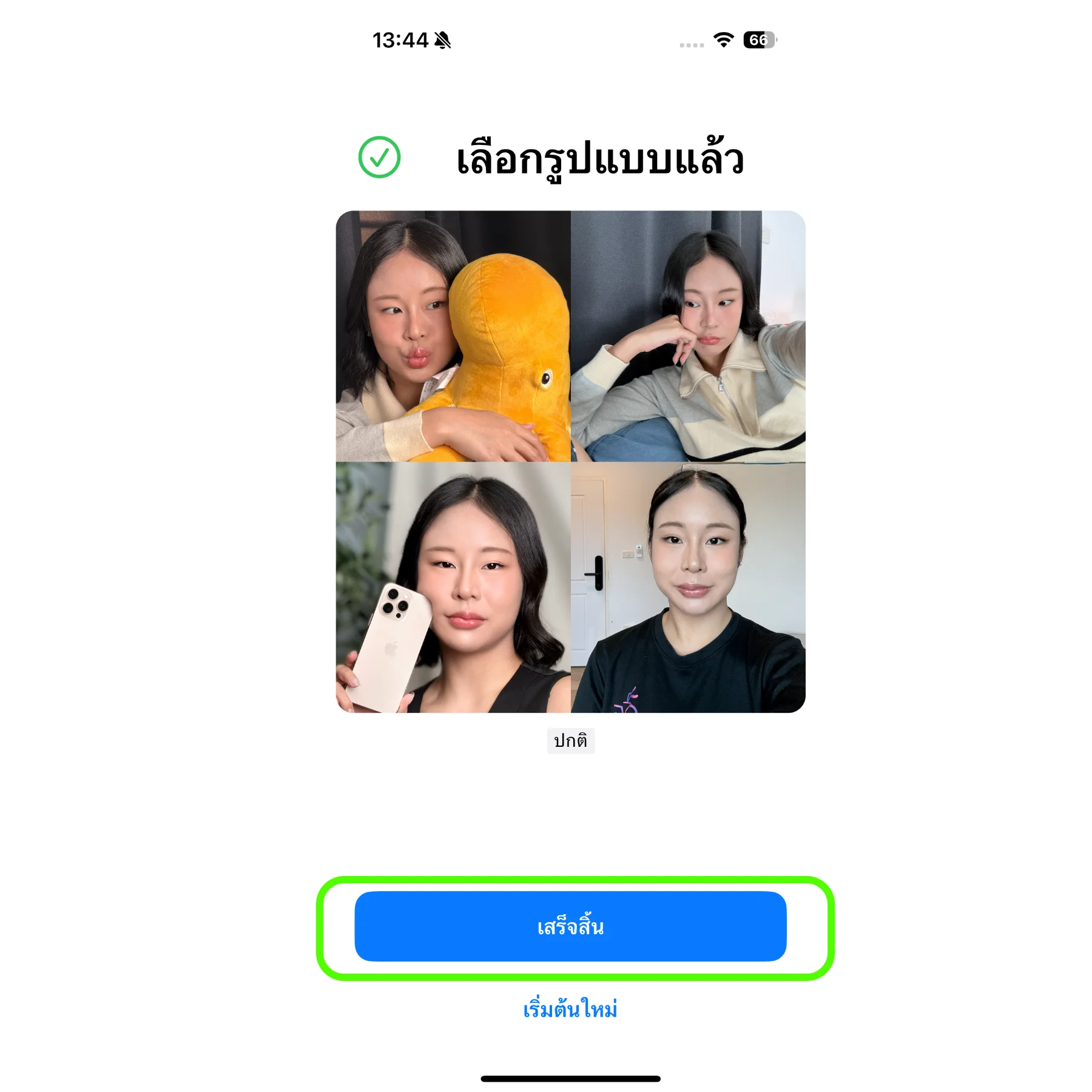 เลือกโทนที่ชอบ หากใครชอบโทนธรรมชาติ ผิวสาว ๆ นัว ๆ แนะนำให้เป็นโทน “ปกติ” เมื่อเลือกเสร็จแล้วให้กด “ดำเนินการต่อ”