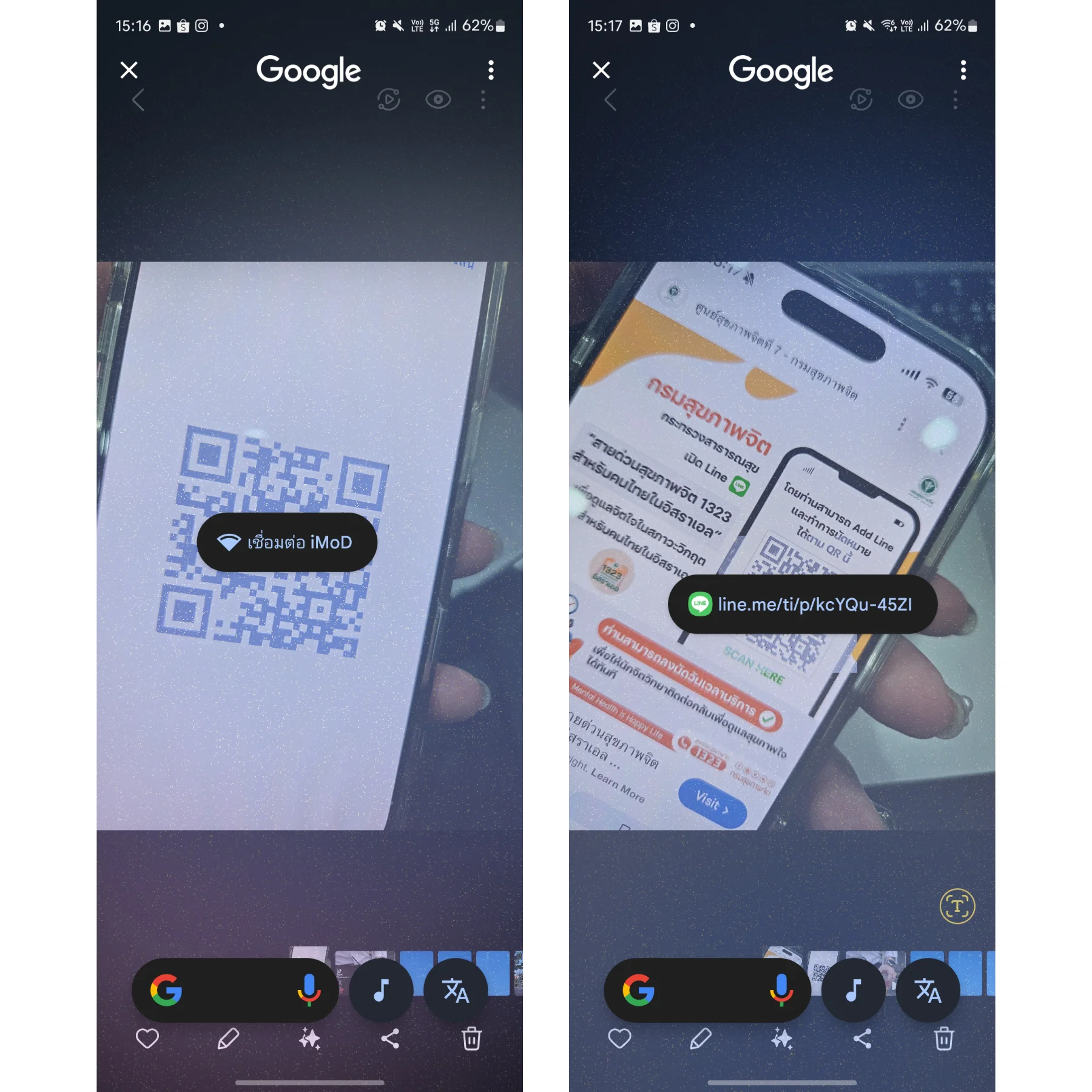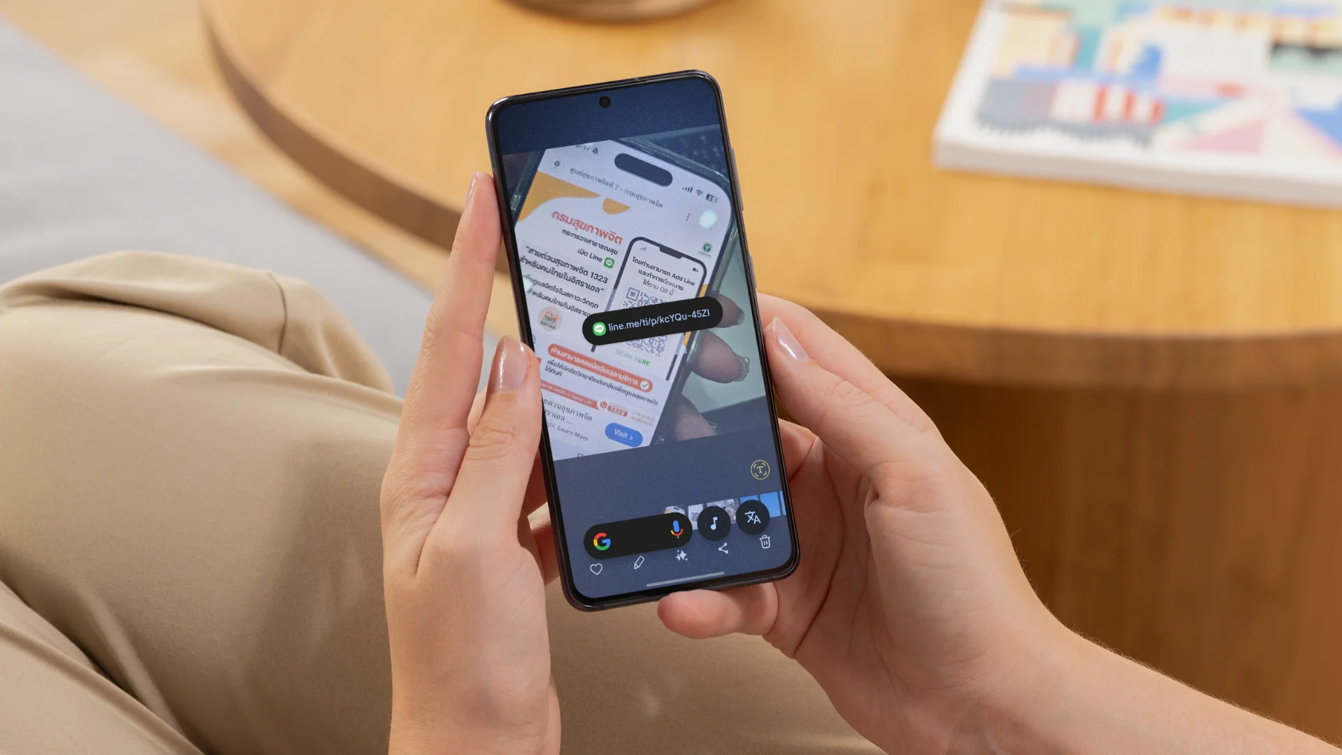 เมื่อเจอ QR code สามารถแตะค้างที่ Navigation Bar เพื่อเรียกใช้งาน Circle to Search หากระบบตรวจจับว่ามี QR code จะมีลิงก์ปรากฏขึ้นมาทันที และคุณสามารถกดลิงก์นั้นเพื่อดำเนินการต่อได้เลย