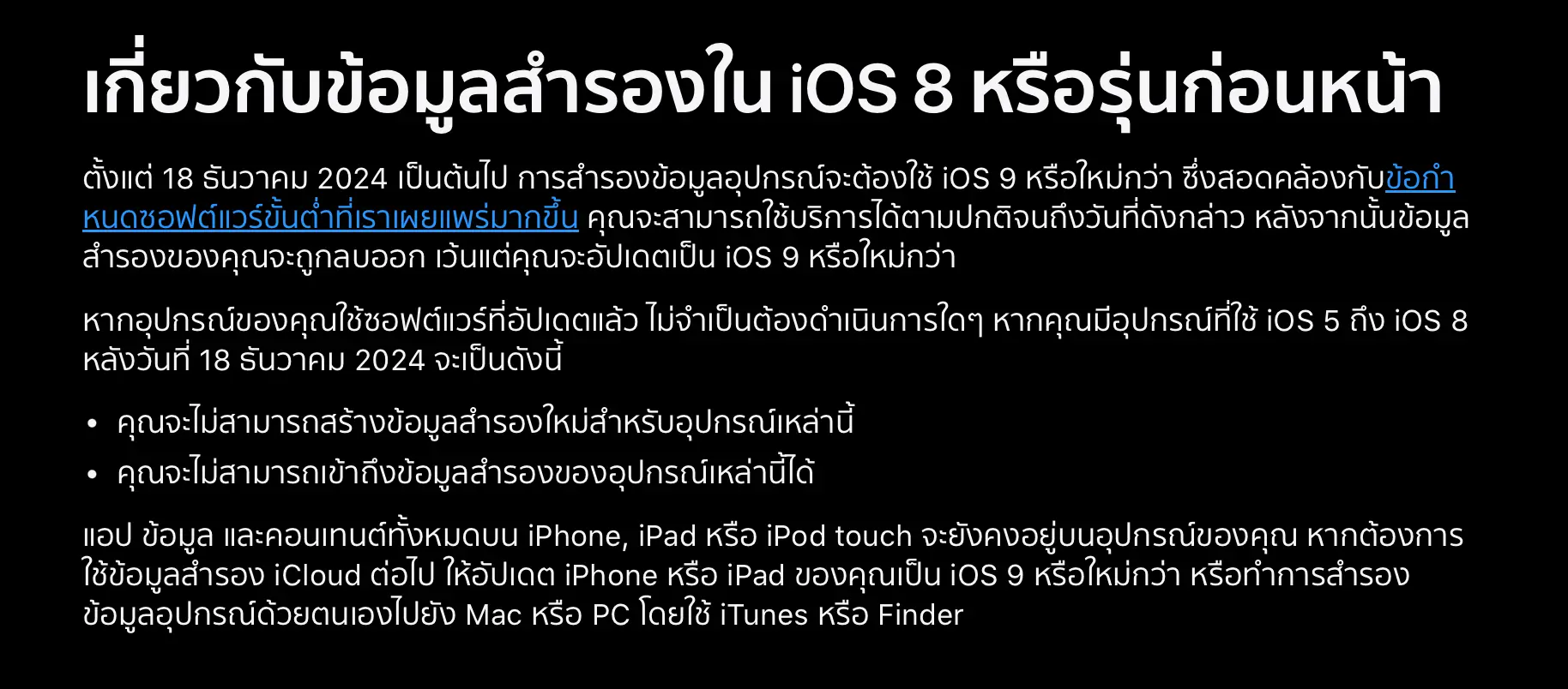 iCloud Backup จะไม่รองรับ iPhone, iPad ที่ใช้ iOS 8 หรือเก่ากว่า
