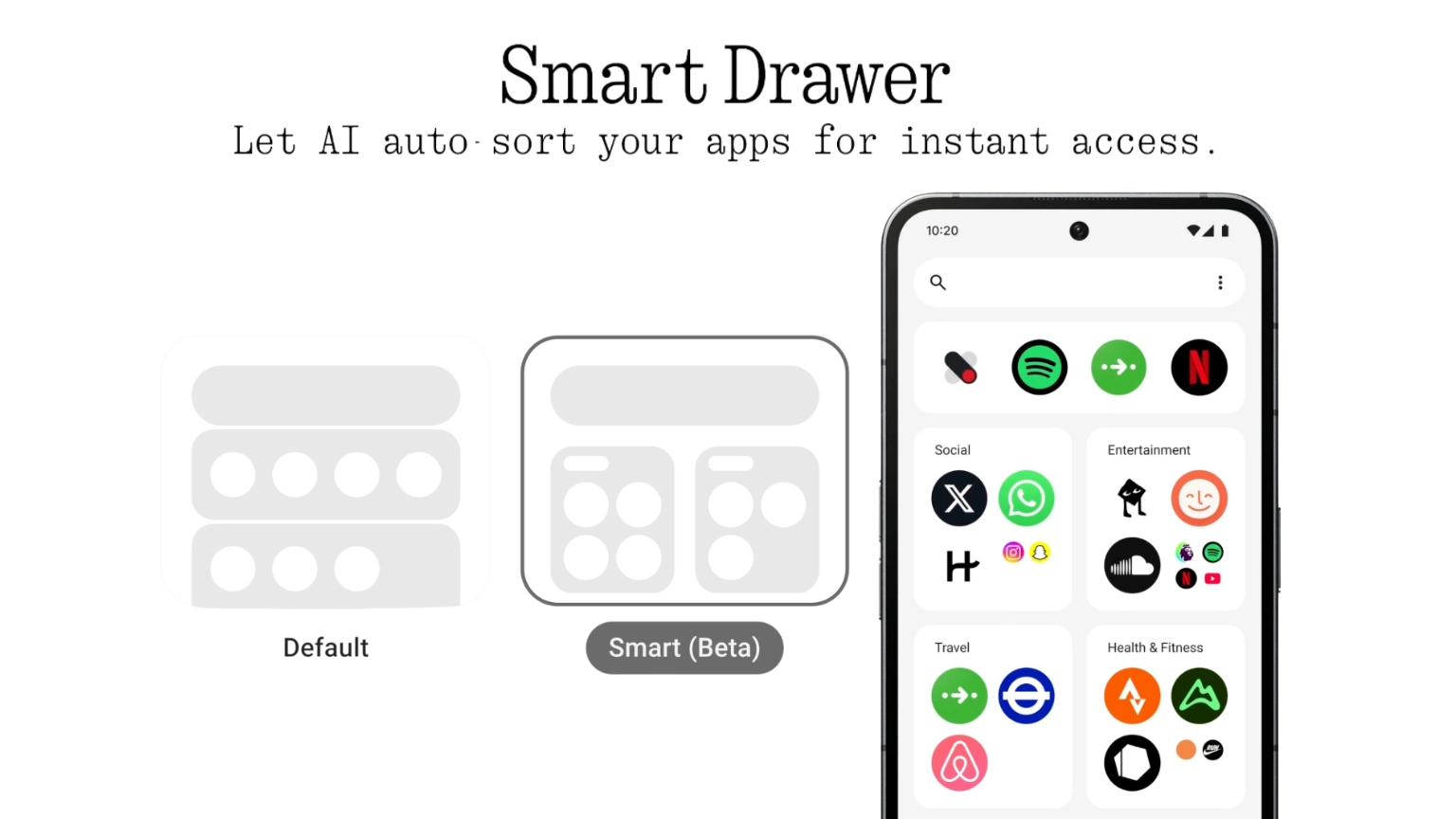 • ฟีเจอร์ที่ใช้ AI ช่วยจัดกลุ่มแอปของคุณโดยอัตโนมัติ ทำให้เราค้นหาแอปที่ต้องการได้ง่ายขึ้น