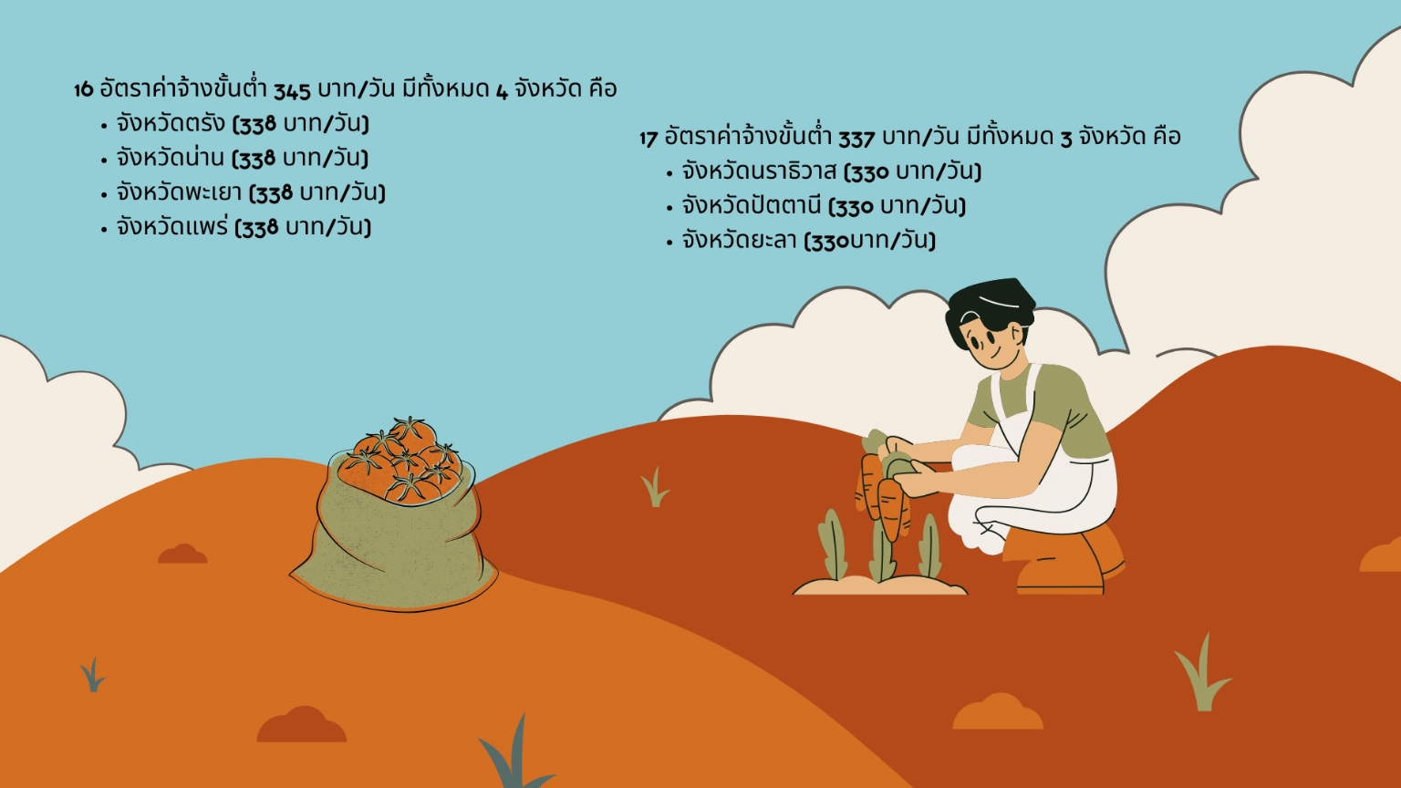 17 อัตราค่าจ้างขั้นต่ำ 337 บาท/วัน มีทั้งหมด 3 จังหวัด คือ
