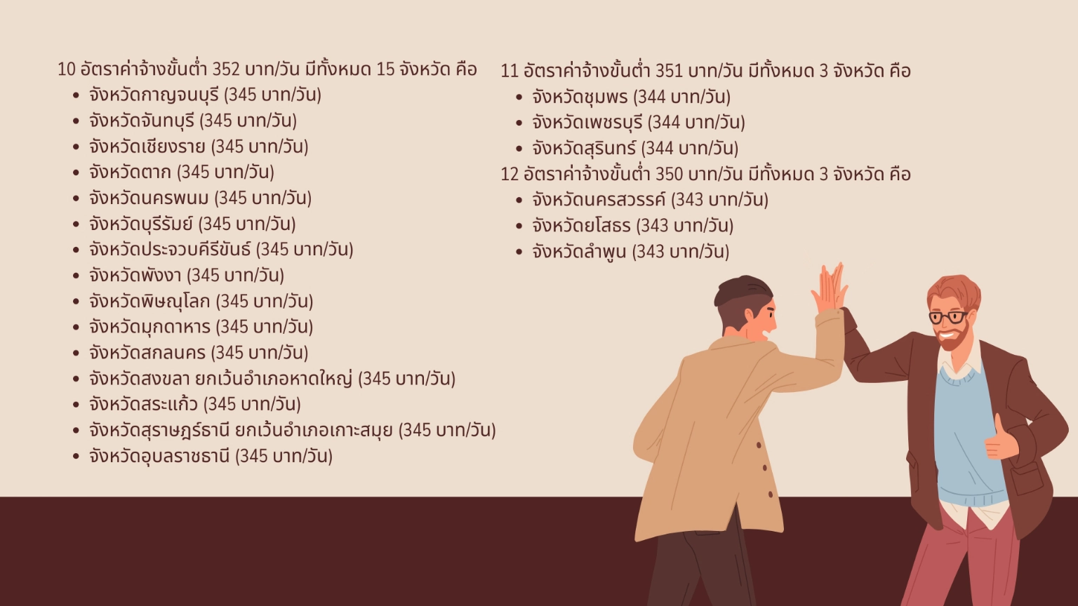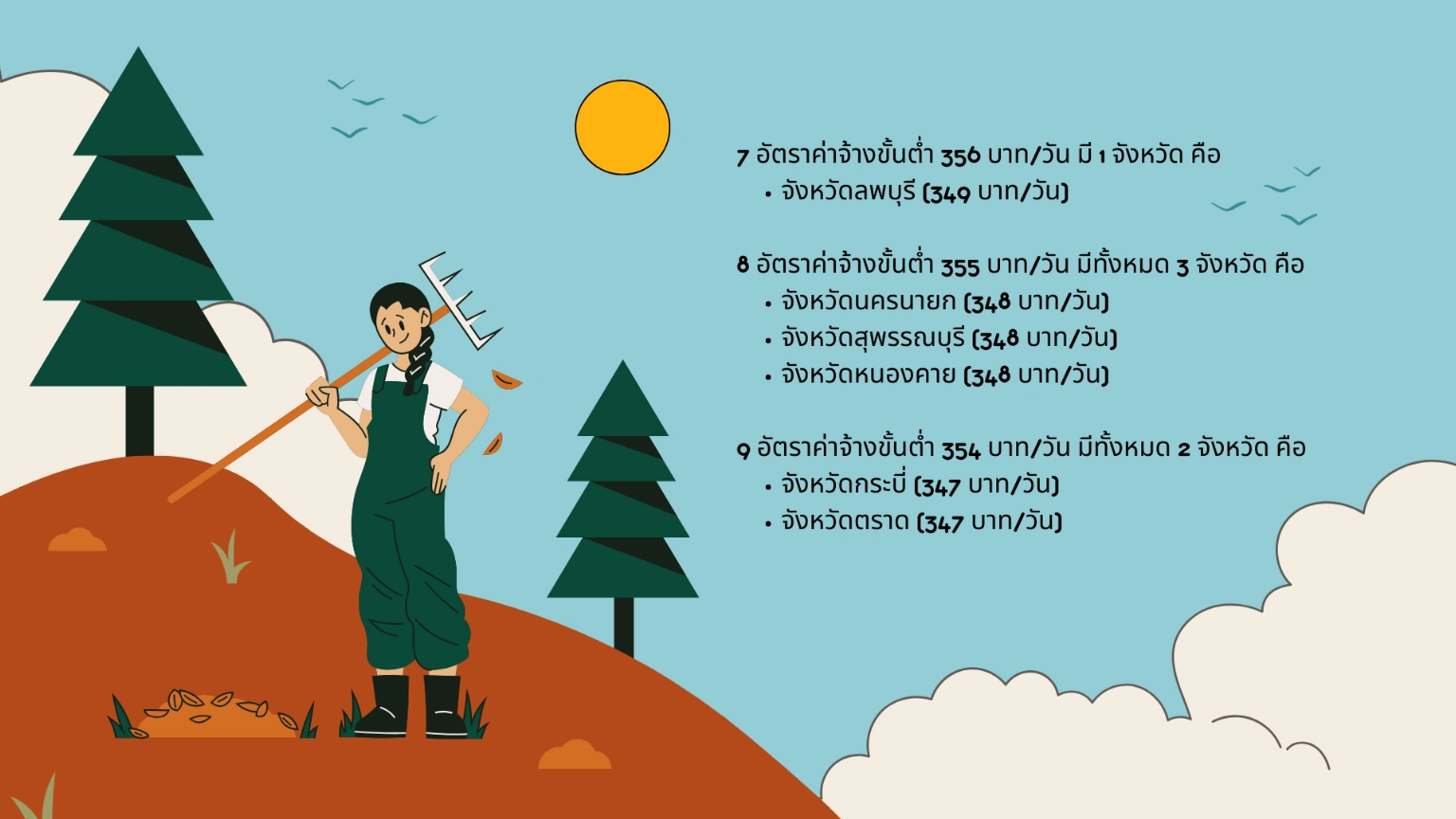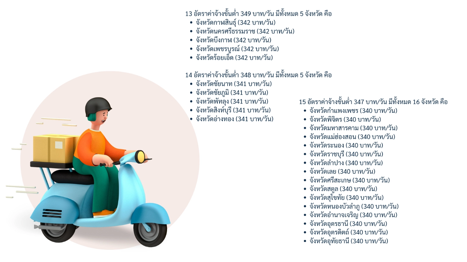 13 อัตราค่าจ้างขั้นต่ำ 349 บาท/วัน มีทั้งหมด 5 จังหวัด คือ
