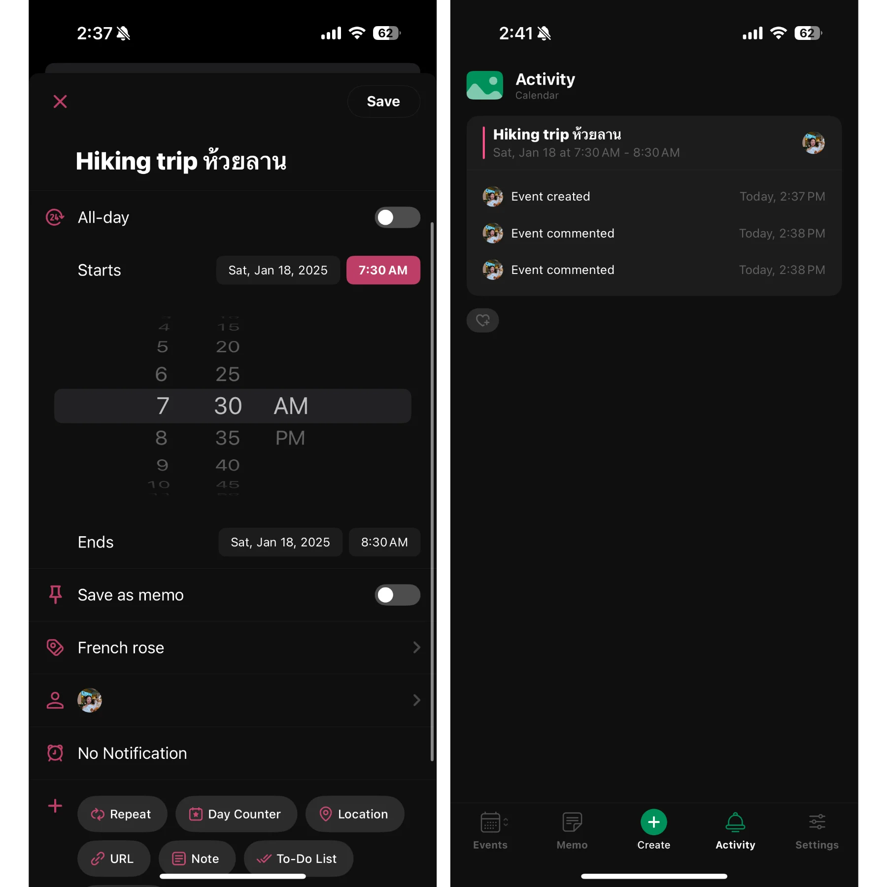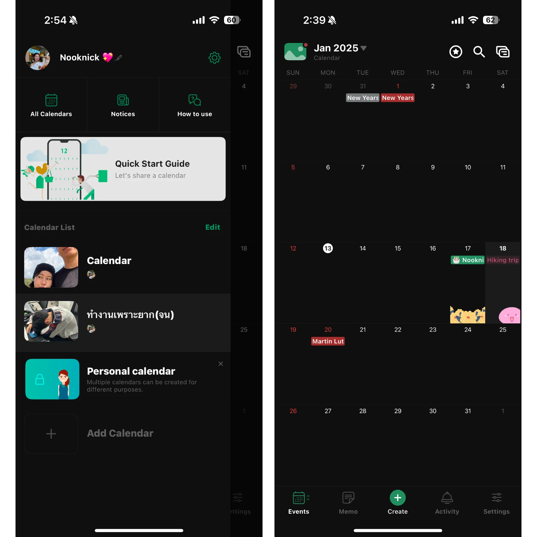 คุณสามารถสร้างปฏิทินหลายฉบับสำหรับกลุ่มต่าง ๆ เช่น ครอบครัว คู่รัก หรือทีมงาน เมื่อมีการสร้างหรือแก้ไขกำหนดการ สมาชิกในปฏิทินจะได้รับการแจ้งเตือนทันที ช่วยลดความสับสนและป้องกันการพลาดนัดสำคัญ