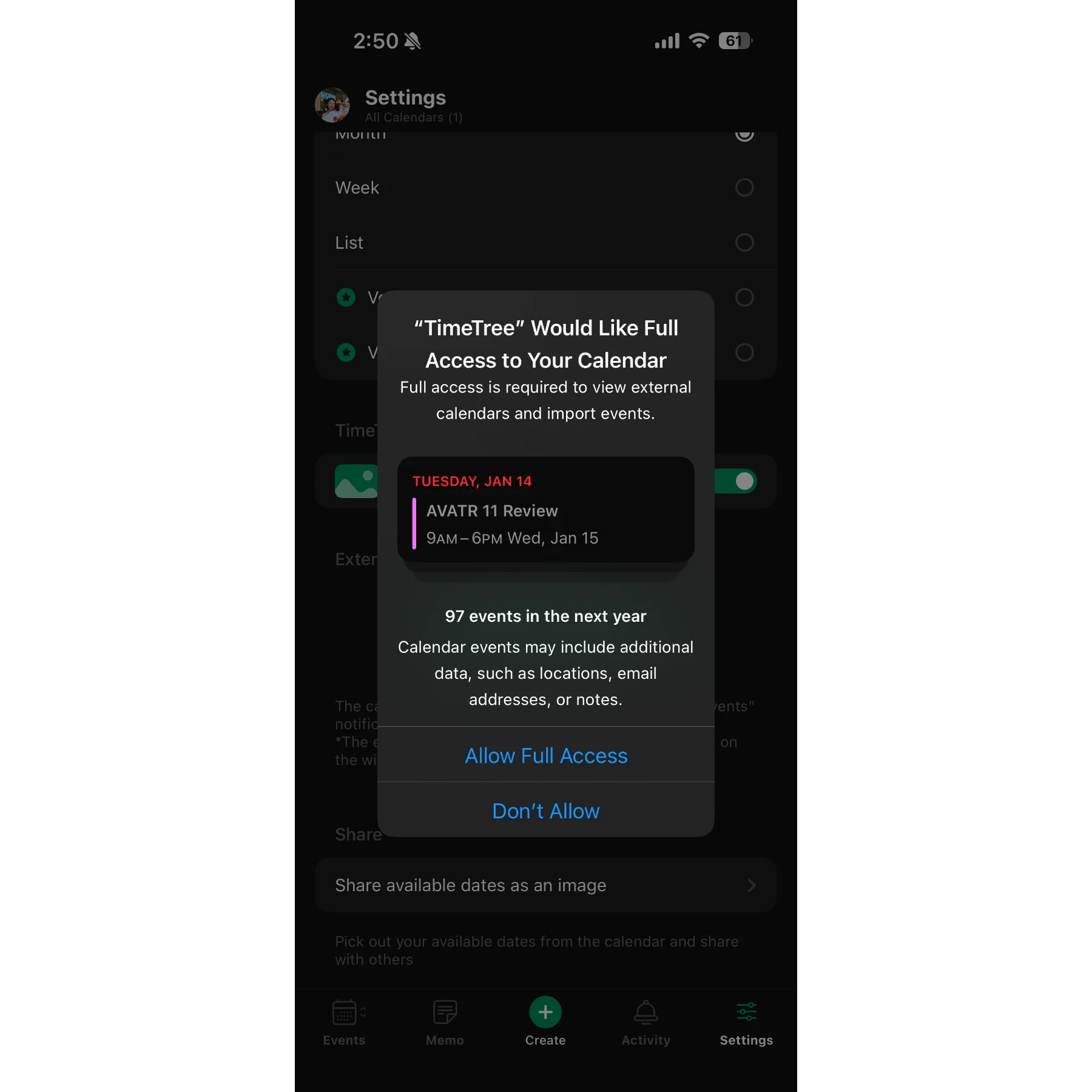 คุณสามารถนำเข้าข้อมูลจากแอป Calenar ใน iPhone มายังแอป TimeTree ได้ ทำให้การเริ่มใช้งานแอปใหม่ไม่ใช่เรื่องยาก เพราะดึงจากข้อมูลที่มีอยู่แล้วมาให้เลย