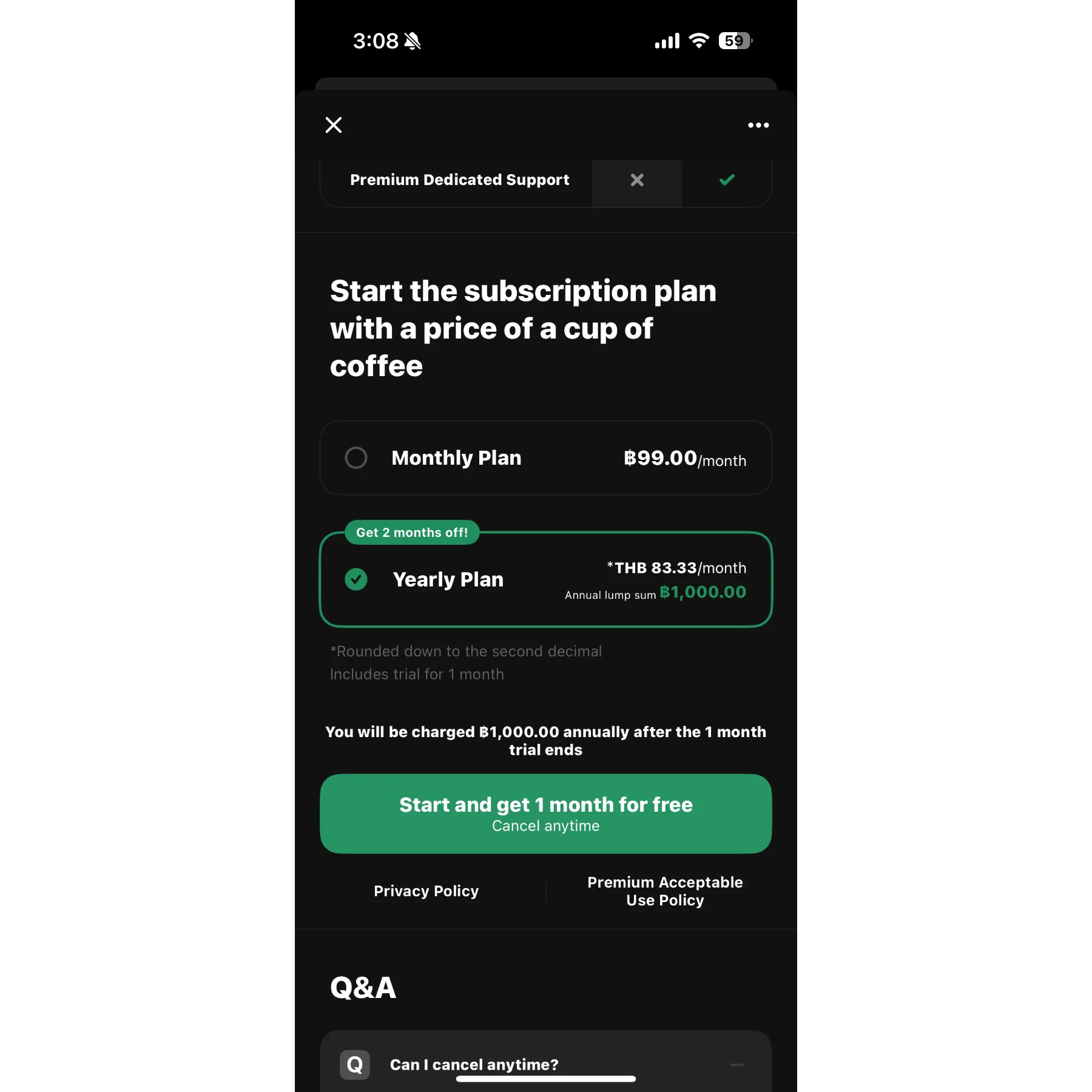 สำหรับผู้ที่ต้องการฟีเจอร์เพิ่มเติม TimeTree มีบริการ Premium ที่ให้คุณสามารถแนบไฟล์ กำหนดความสำคัญของกิจกรรม และมุมมองปฏิทินในแนวตั้ง พร้อมทั้งไม่มีโฆษณารบกวน โดยมีค่าบริการรายเดือน 99 บาท หรือรายปีอยู่ที่ 1,000 บาท