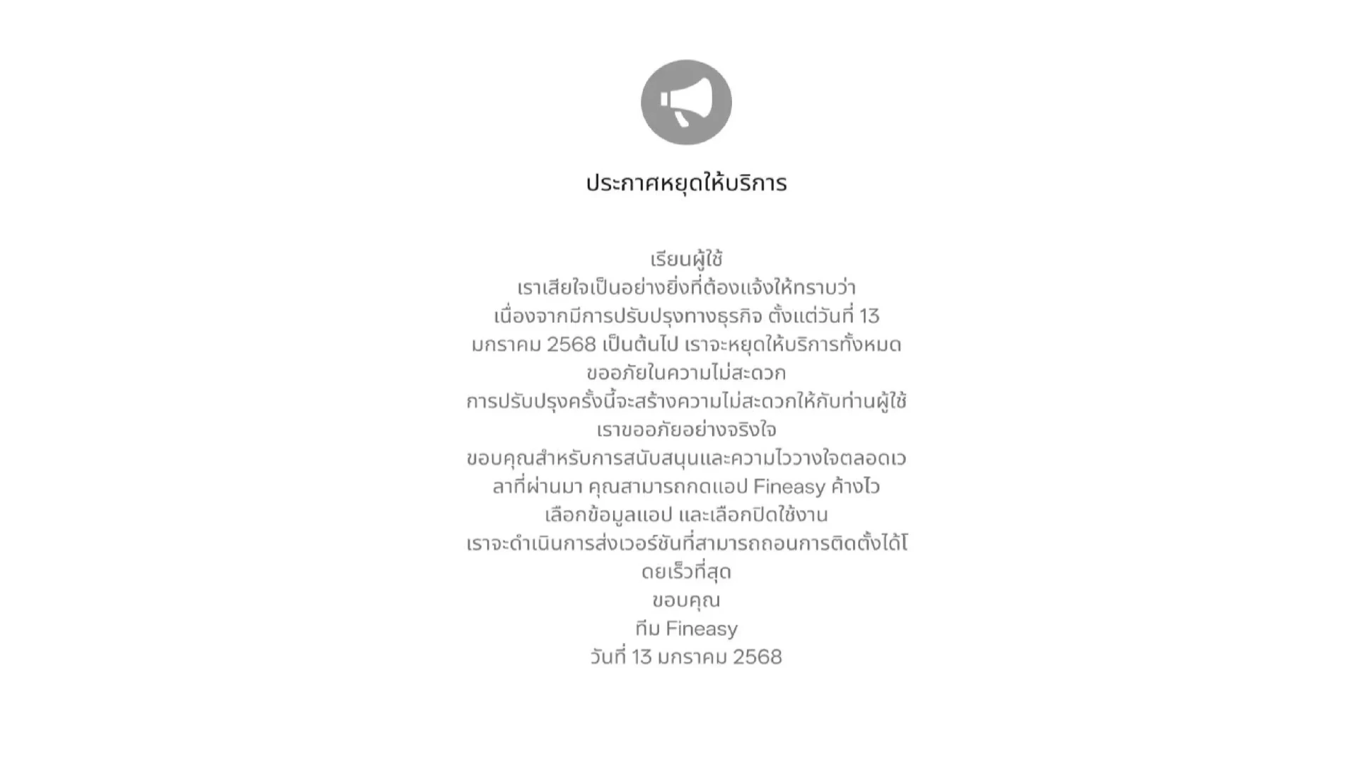- ตั้งแต่วันที่ 14 มกราคม เป็นต้นไป จะไม่มีการติดตั้ง Fineasy บนโทรศัพท์เครื่องใหม่