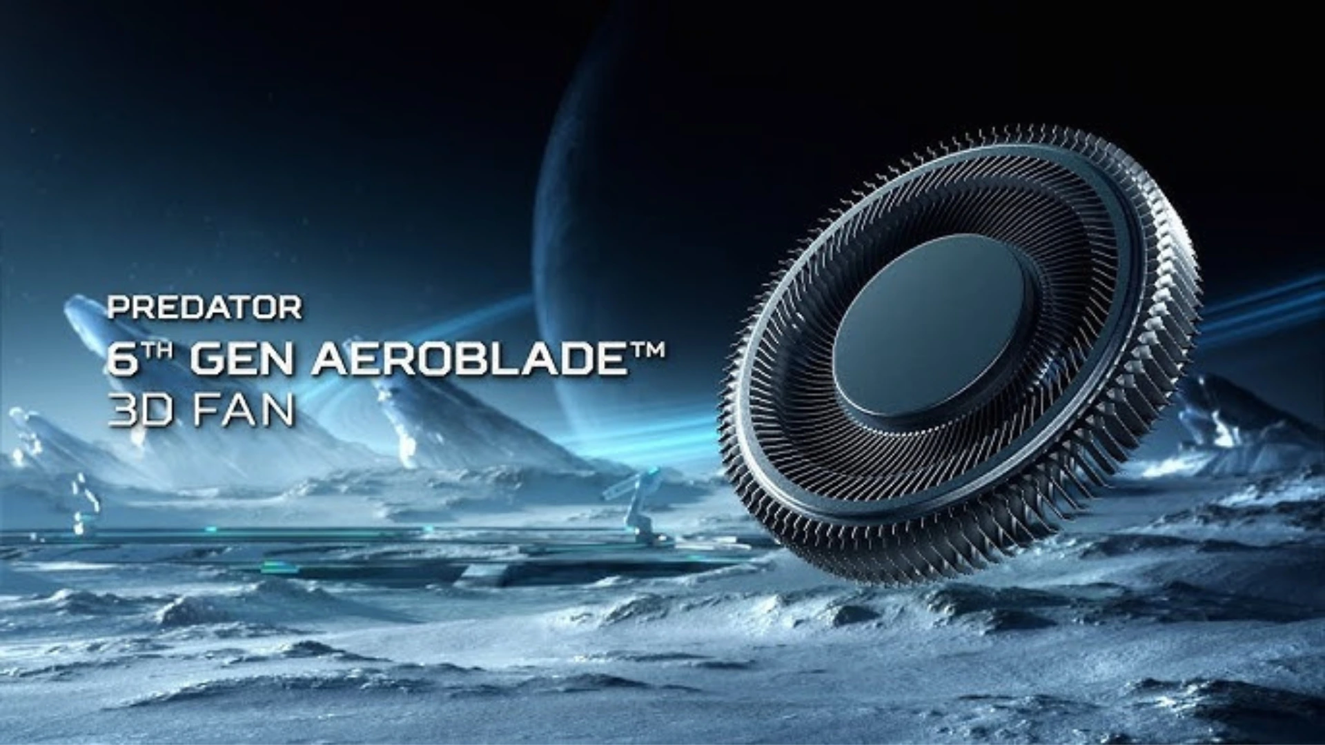 Predator Helios ได้ยกระดับเทคโนโลยีระบายความร้อนด้วยพัดลม 6th Gen AeroBlade 3D ที่บางที่สุดในโลกเพียง 0.05 มม. ช่วยเพิ่มการไหลเวียนของอากาศได้ 20% เมื่อเทียบกับพัดลมพลาสติก ใช้ซิลิโคนระบายความร้อนโลหะเหลวและท่อระบายความร้อนแบบเวกเตอร์เพื่อลดอุณหภูมิ