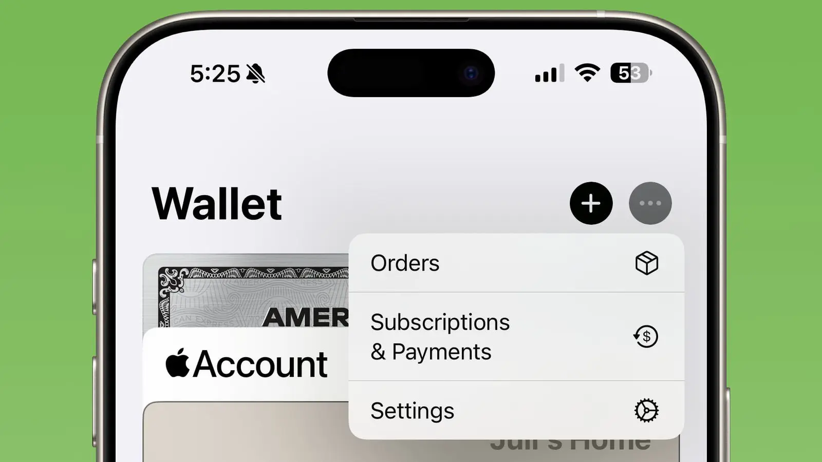 แอป Wallet เพิ่มเมนูย่อยที่จุด 3 จุดบนขวา ได้แก่ การสั่งซื้อ การตั้งค่า การสมัครรับข้อมูล และการชำระเงิน