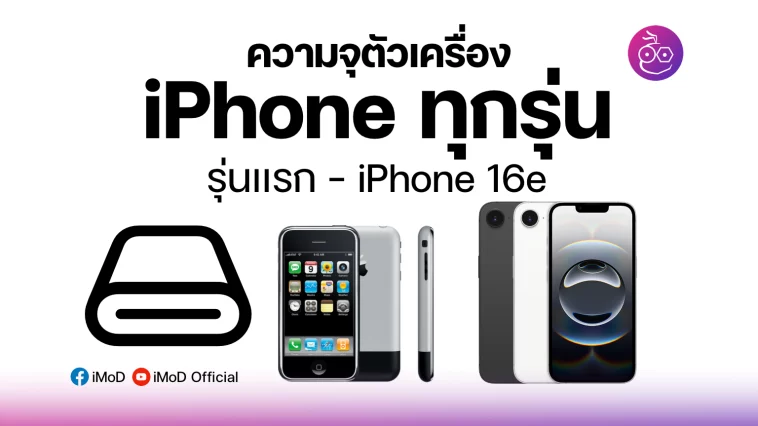 รวมความจุ iPhone ทุกรุ่น แสดงข้อมูลแต่ละรุ่นว่าเปิดตัวมาพร้อมความจุเท่าไหร่บ้าง อัปเดตข้อมูลตั้งแต่ iPhone รุ่นแรกปี 2007 – iPhone 16e รุ่นล่าสุดปี 2025