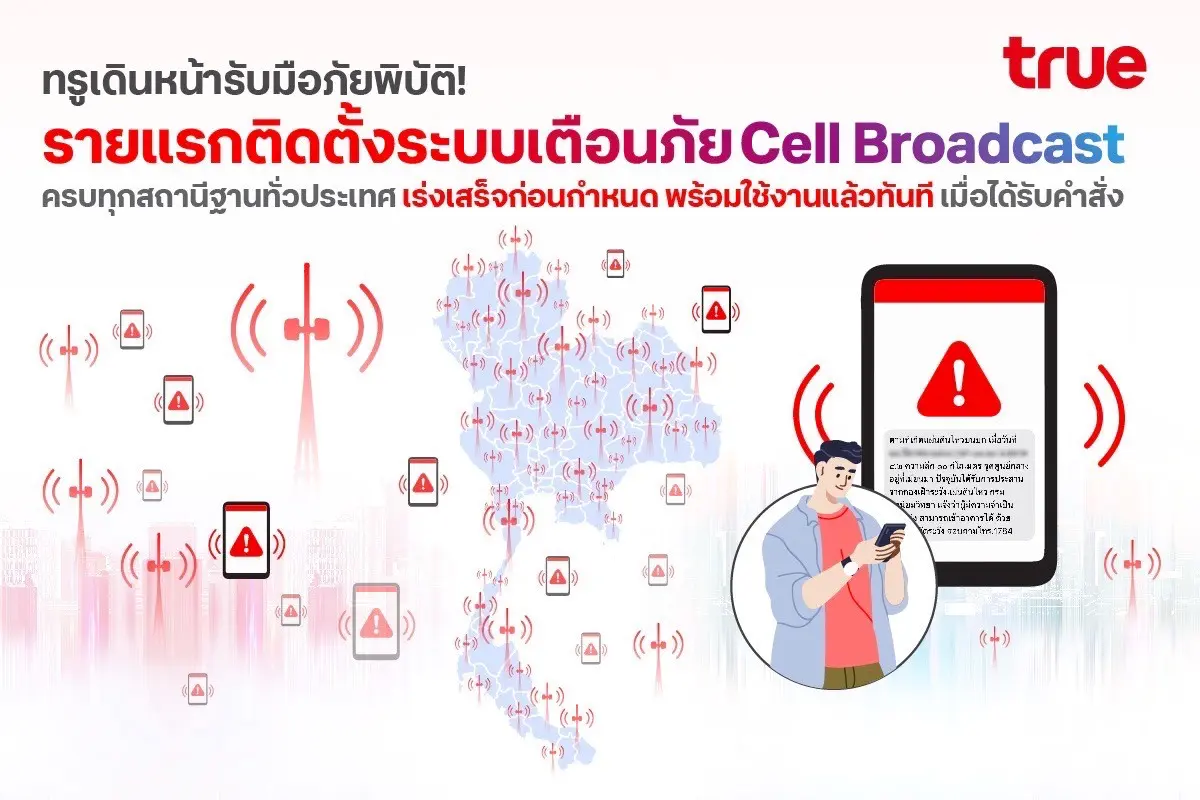 True เดินหน้ารับมือภัยพิบัติ! รายแรกติดตั้งระบบเตือนภัย Cell Broadcast ครบทุกสถานีฐานทั่วประเทศ เร่งเสร็จก่อนกำหนด พร้อมใช้งานแล้วทันทีเมื่อได้รับคำสั่ง โดยระบบ Cell Broadcast Service นี้จะเป็นการทำงานร่วมกันระหว่างภาครัฐและเอกชน