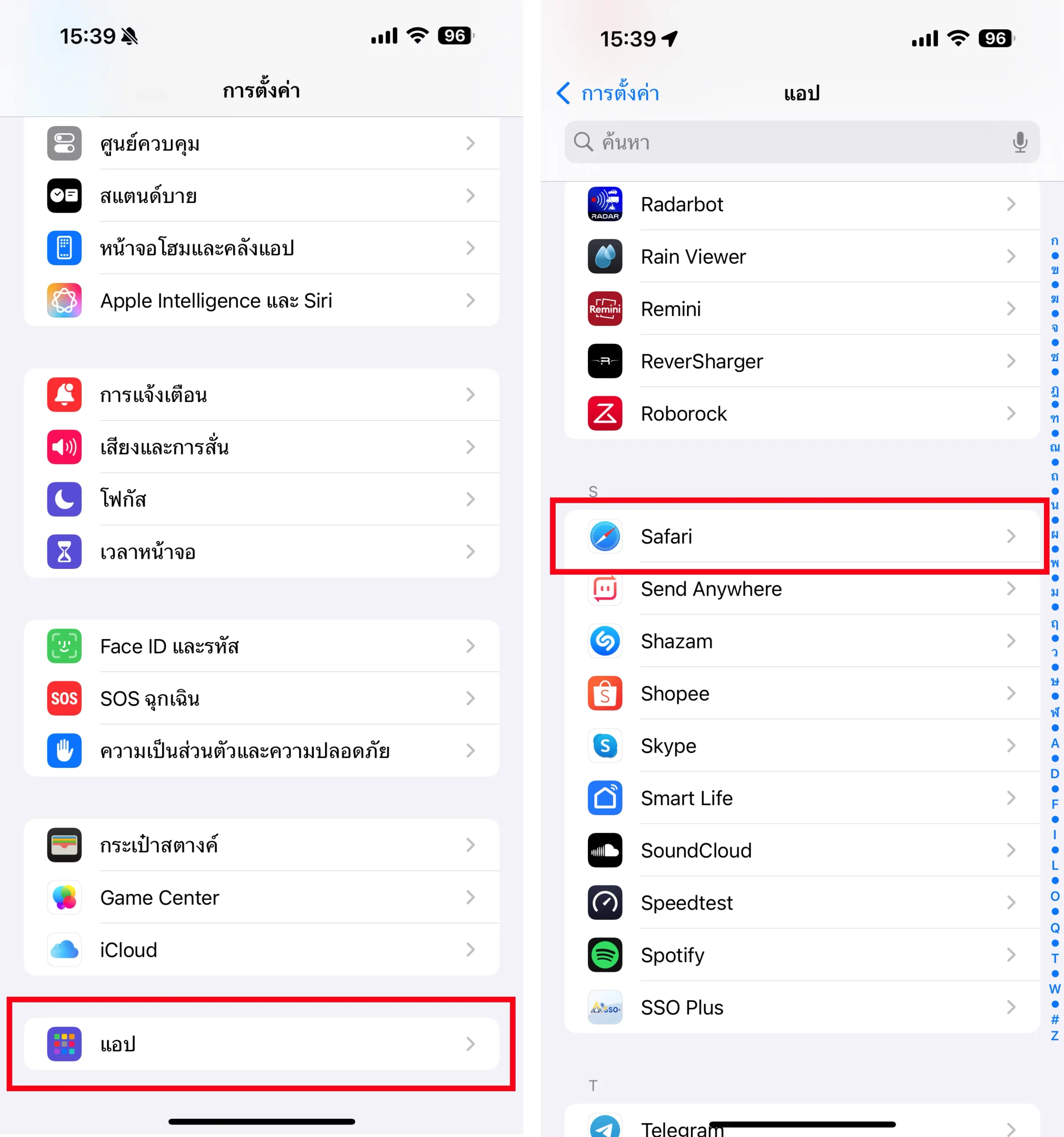 ไปที่การตั้งค่า > แอป > Safari