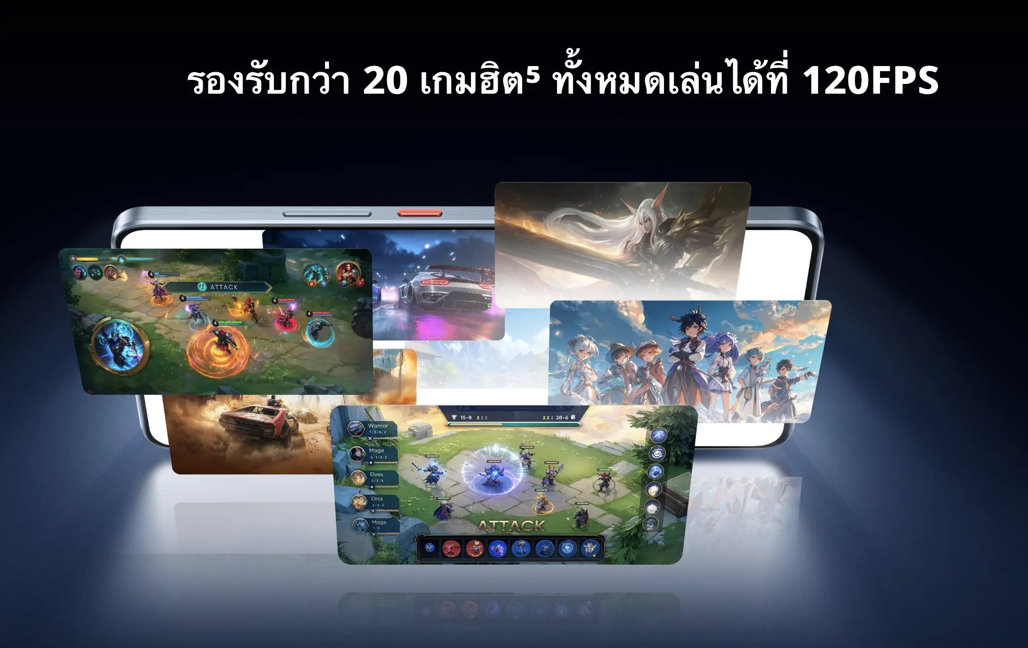 Realme GT7 เด่นเรื่องการเล่นเกม ด้วยพลังของชิป Dimensity 9400e ทำให้เล่นเกมได้ไม่มีสะดุด สามารถเล่นเกมที่รองรับกว่า 20 เกม ได้ที่ 120FPS นอกจากนี้ยังทำให้การงานแบบหลายแอป สลับแอปไปมา มีความลื่นไหลแม้ใช้งานเป็นระยะเวลานาน