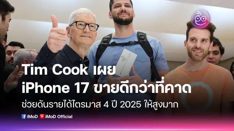 Tim Cook เผยว่า iPhone 17 ขายดีกว่าที่ Apple คาด โดยเฉพาะ iPhone 17 ตัวเริ่มต้น และ iPhone 17 Pro ขายดีจนต้องเพิ่มกำลังการผลิต