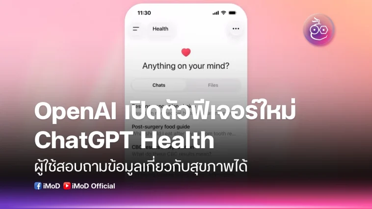 OpenAI ประกาศเปิดตัว ChatGPT Health ซึ่งเป็นฟีเจอร์ใหม่ใน ChatGPT ที่ออกแบบมาให้ผู้ใช้สอบถามข้อมูลเกี่ยวกับสุขภาพได้ โดยจะแยกออกจากการใช้งานทั่วไป