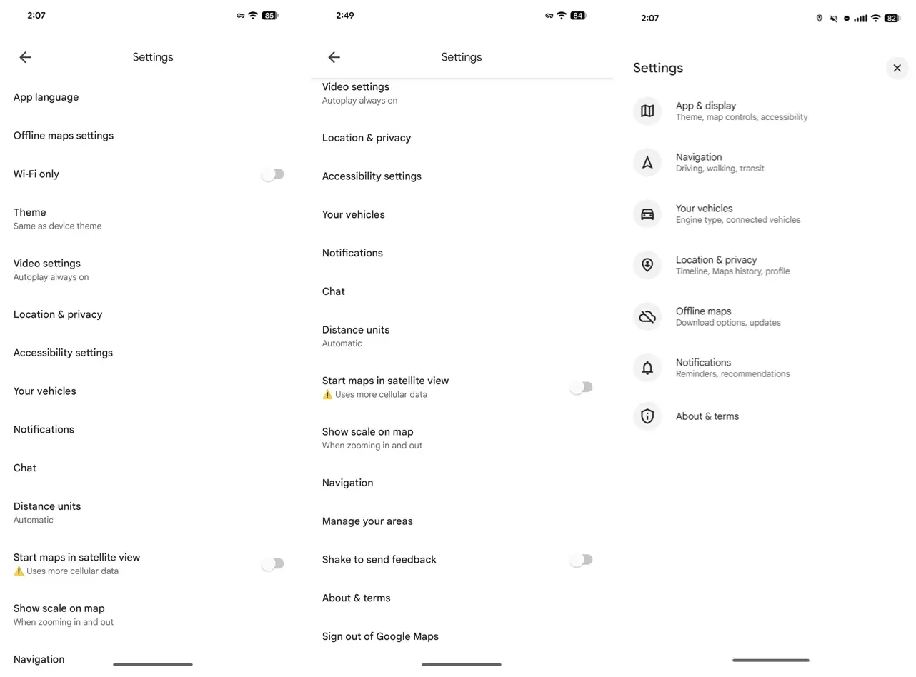 Google Maps ได้ปรับปรุงหน้าจอการตั้งค่าบน Android ใหม่ การออกแบบใหม่นี้จัดกลุ่มเมนูต่างๆ ให้ใช้งานง่ายขึ้นและดูสะอาดตาขึ้น