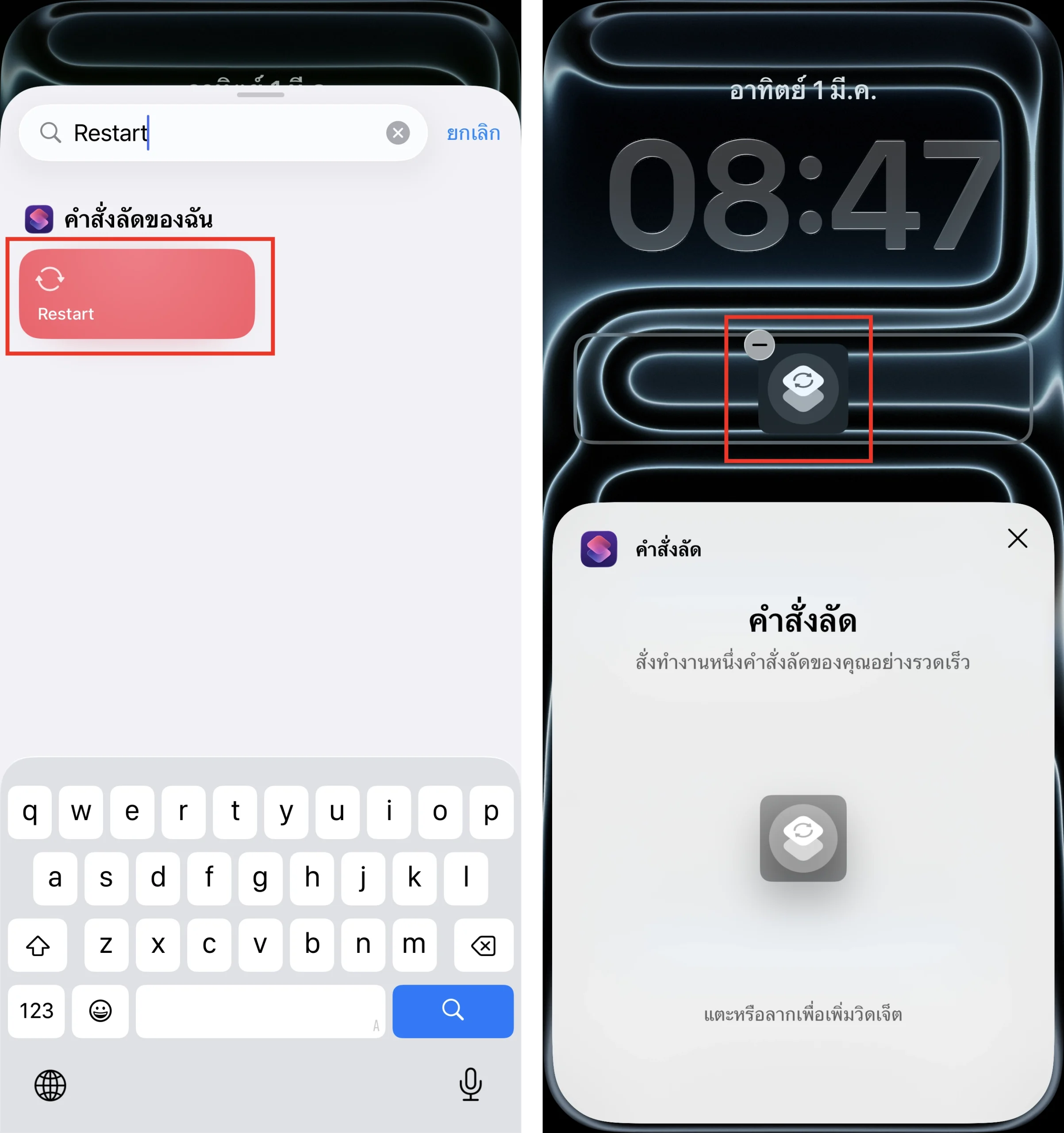 วิธีเพิ่มปุ่ม Restart เครื่อง iPhone ไว้ที่หน้าจอล็อก