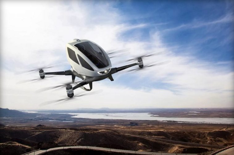 EHang คิดค้นและผลิตที่ประเทศจีนจุดเด่นของ EHang 184 คือ การออกบแบบที่สวยงามทันสมัย, ห้องโดยสารสามารถนั่งได้ 1 คน น้ำหนักไม่เกิน 100 กก. พร้อมพื้นที่สำหรับเก็บกระเป๋า, ระบบเครื่องปรับอากาศในตัว, ใช้แบตเตอรีเป็นแหล่งพลังงาน, บินได้นาน 23 นาทีและความเร็วสูงสุดอยู่ที่ 110 กม./ชม.