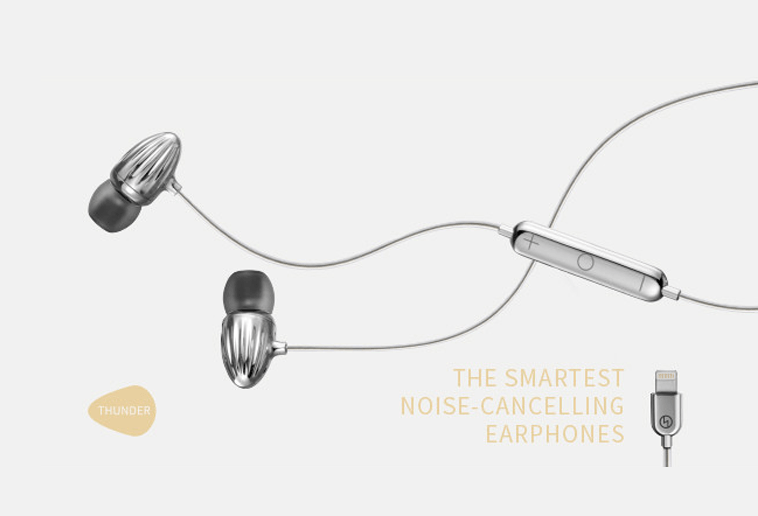 Thunder เป็นสุดยอดหูฟังมีการเชื่อมต่อแบบ Lightning ที่มีคุณสมบัติตัดเสียงรบกวนรอบข้าง มีการตั้งค่ารูปแบบเสียงให้เหมาะสมกับแต่ละบุคคลใช้งานร่วมกับ Application มีแบตเตอรี่และ Chip ประมวลผลในตัวเอง มี Mode การใช้งาน 2 แบบ ได้แก่