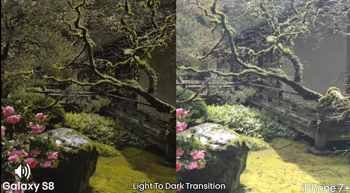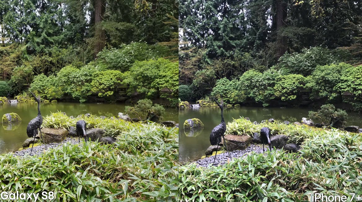 ความคมชัดของกล้องหลังทั้ง 2 รุ่นถือว่ามีความใกล้เคียงกัน แต่ Galaxy S8 จะให้สีและแสงที่สดกว่า โดยจุดพิจารณาของ iPhone 7 Plus คือ เมื่อถ่ายในพื้นที่แสงน้อยแล้วเปลี่ยนไปถ่ายในที่สว่างการปรับสีและแสงยังมีปัญหาการกระพริบอยู่