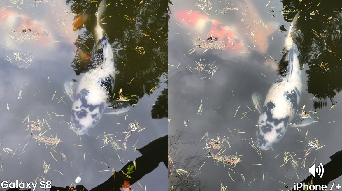 ผู้ทดสอบได้นำ Smartphone ทั้ง 2 รุ่นถ่ายภาพในบ่อปลา โดย iPhone 7 Plus ให้ความละเอียดของภาพและสีคมชัดกว่า Galaxy S8 และผู้ทดสอบให้ความเห็นว่า จริงๆแล้วทั้ง 2 รุ่นทำได้ดีเหมือนกัน แทบจะบอกไม่ได้ว่ารุ่นไหนดีกว่า