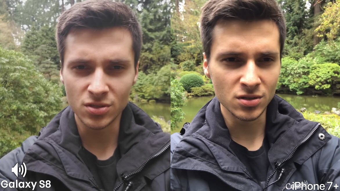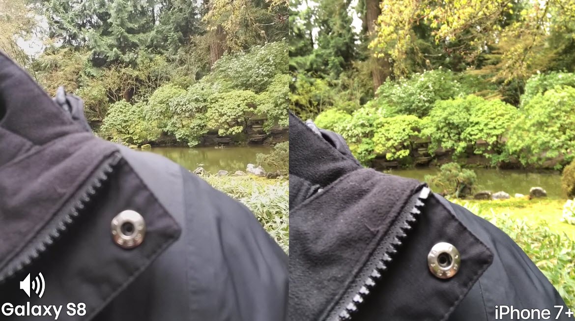 แต่ที่น่าสนใจคือ กล้องหน้าของ Galaxy S8 มีการโฟกัสจุดได้ดีและเร็วมาก สามารถโฟกัสพื้นที่ด้านหลังของภาพได้อย่างชัดเจนโดย iPhone 7 Plus ยังเก็บรายละเอียดไม่ค่อยชัดเจนมากนัก