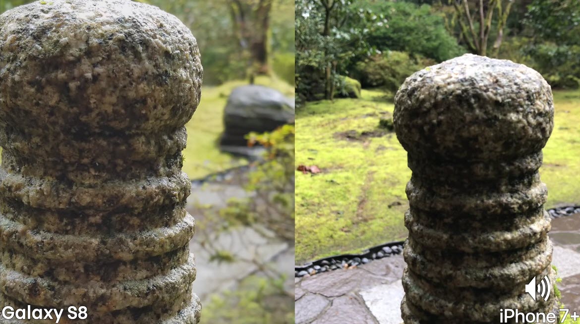 ผู้ทดสอบได้ทำการถ่ายวิดีโอและใช้ Smartphone ทั้ง 2 รุ่นถ่ายเข้าไปที่วัตถุแบบใกล้ที่สุด พบว่าส่วนใหญ่แล้ว iPhone 7 Plus เก็บภาพได้ไกล้กว่าและละเอียดกว่า Galaxy S8 ในบางครั้ง