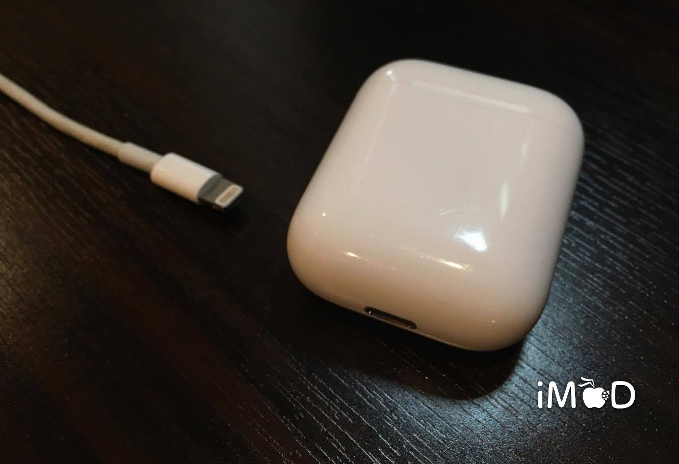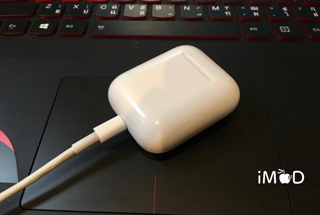 หากต้องการชาร์จกล่องชาร์จ ให้เสียบสาย Lightning ที่มาพร้อมกับหูฟัง AirPods เข้ากับขั้วต่อ Lightning บนกล่องชาร์จ จากนั้นเสียบปลายสายอีกด้านหนึ่งเข้ากับที่ชาร์จหรือพอร์ต USB โดยสามารถชาร์จกล่องชาร์จโดยที่มีหรือไม่มีหูฟัง AirPods อยู่ข้างในก็ได้
