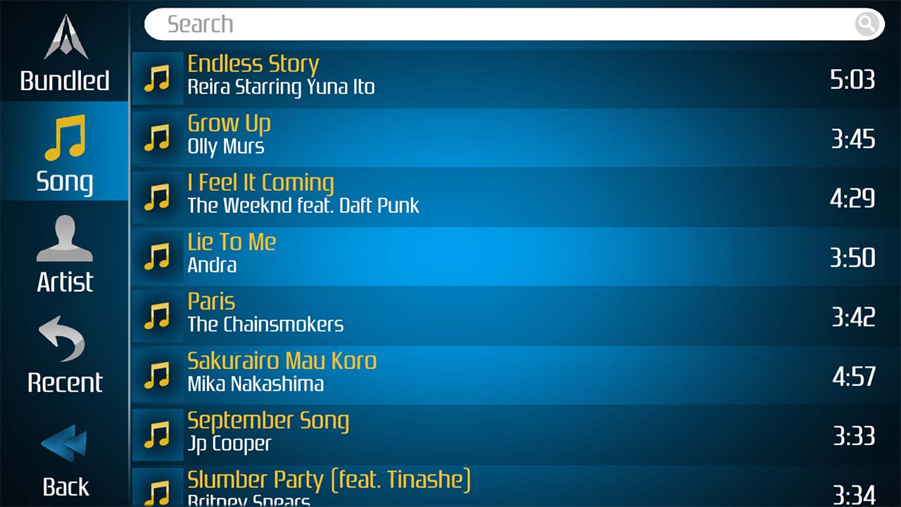 - สามารถฟังเพลงฟรีใหม่ ๆ ได้ภายในเกม (มีการจัดอันดับเพลงที่เล่นยอดฮิต)