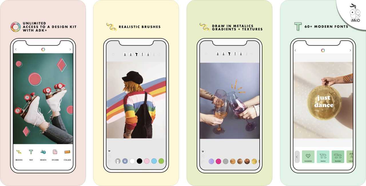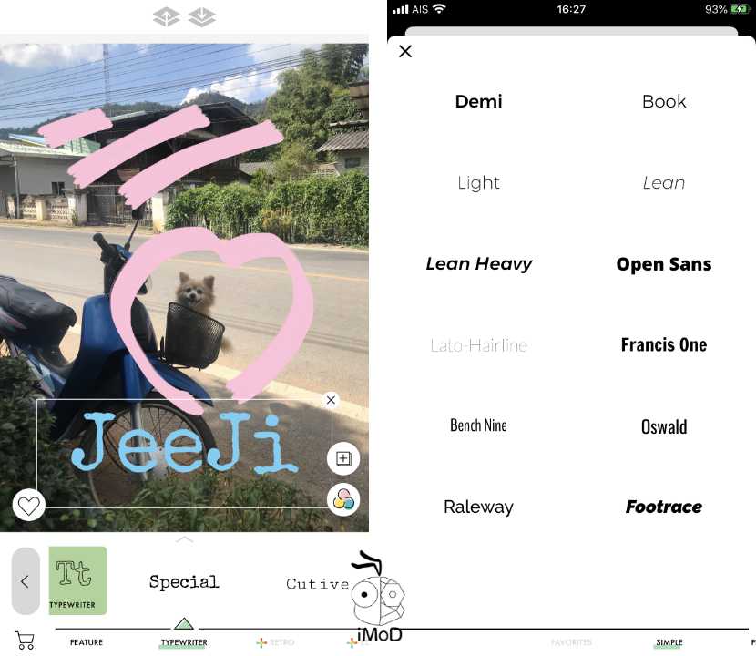 แอปแต่งรูปด้านการใส่ฟอนต์ (ข้อความสั้นๆ), ขีดเขียน, ติดสติกเกอร์ และใส่ภาพตัดปะเก๋ๆ ที่มีมาให้เลือกใช้งานเพียบมากกว่า 200 ภาพ, แบบอักษรสวยๆ อีกกว่า 60 แบบ, สติกเกอร์ให้เลือกใช้งานอีกมากมายภายในแอปฯ เหมาะสำหรับใช้ตกแต่งภาพเก๋ๆ สำหรับโพสต์ลง IG เป็นอย่างมาก