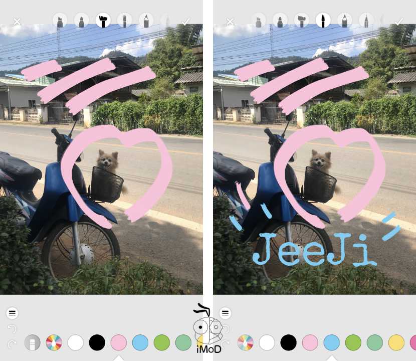 หัวแปรงและถาดสีของ A Design Kit นั้นไม่รู้ทำไมใช้แล้วน่ารักกว่าแอปอื่นๆ ก็ไม่รู้ นี่เพียงขีดๆ เขียนๆ แบบมั่วๆ ในรูปภาพก็ยังน่ารักเลยนะ ไม่เชื่อก็ไปลองดูสิ