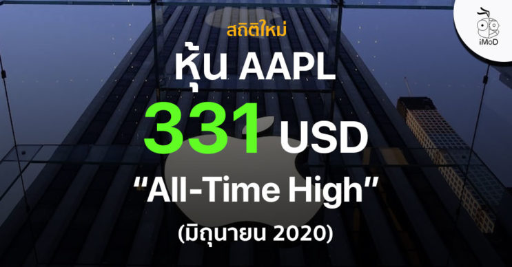 ถึงแม้จะยังอยู่ในสถานการณ์ COVID-19 แต่ราคาหุ้น Apple ทำสถิติสูงสุดใหม่อีกครั้งที่ 331 ดอลลาร์ต่อหุ้น จากสถิติเดิม 300 ดอลลาร์ต่อหุ้นในเดือนมกราคม ที่ผ่านมา