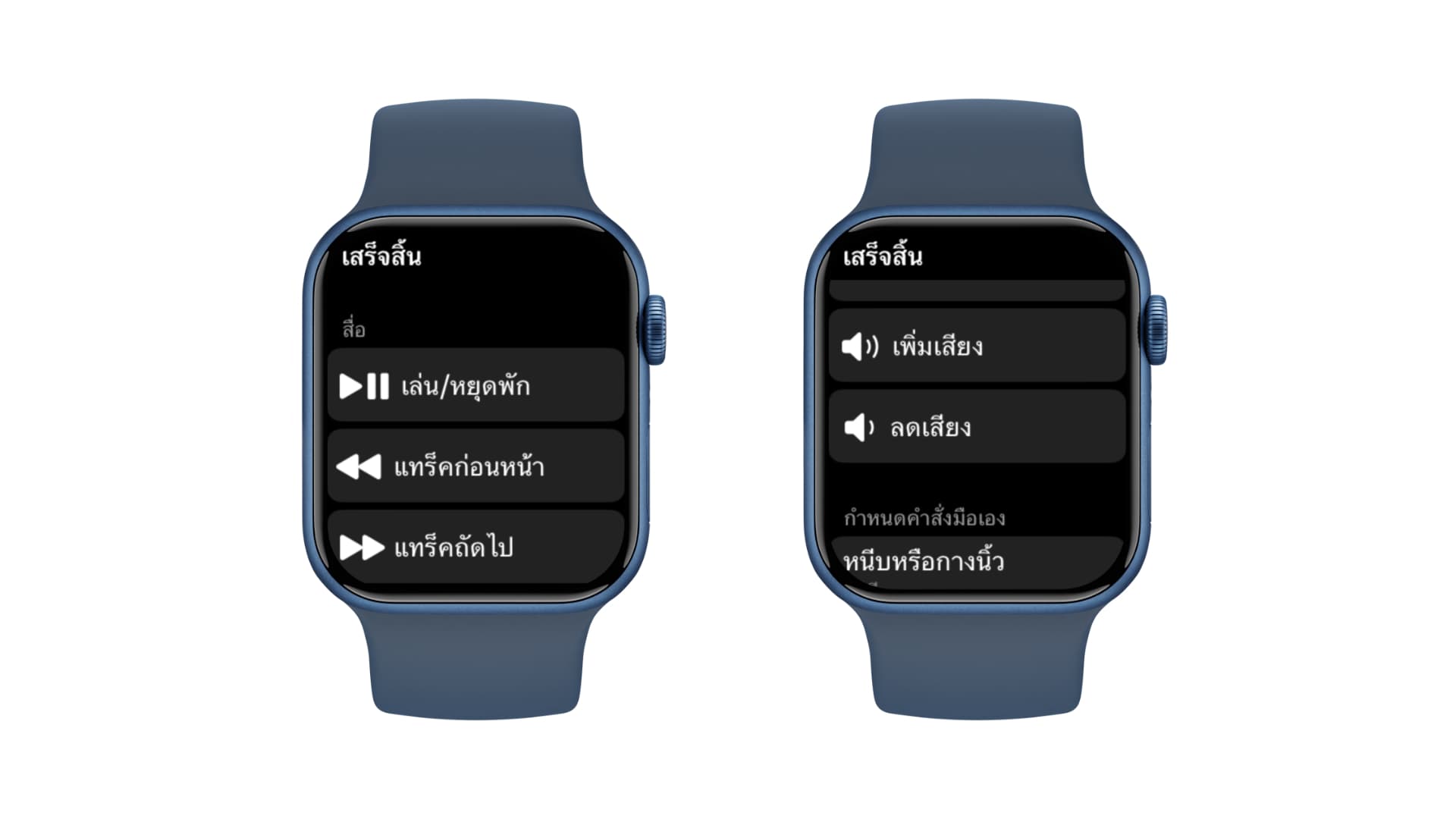 หากสั่งการผ่าน Apple Watch ยังสามารถใช้งานท่าทางต่าง ๆ เช่น การกำมือ การหนีบหรือกางนิ้ว เพื่อสั่งการตามที่ตั้งค่าไว้ได้