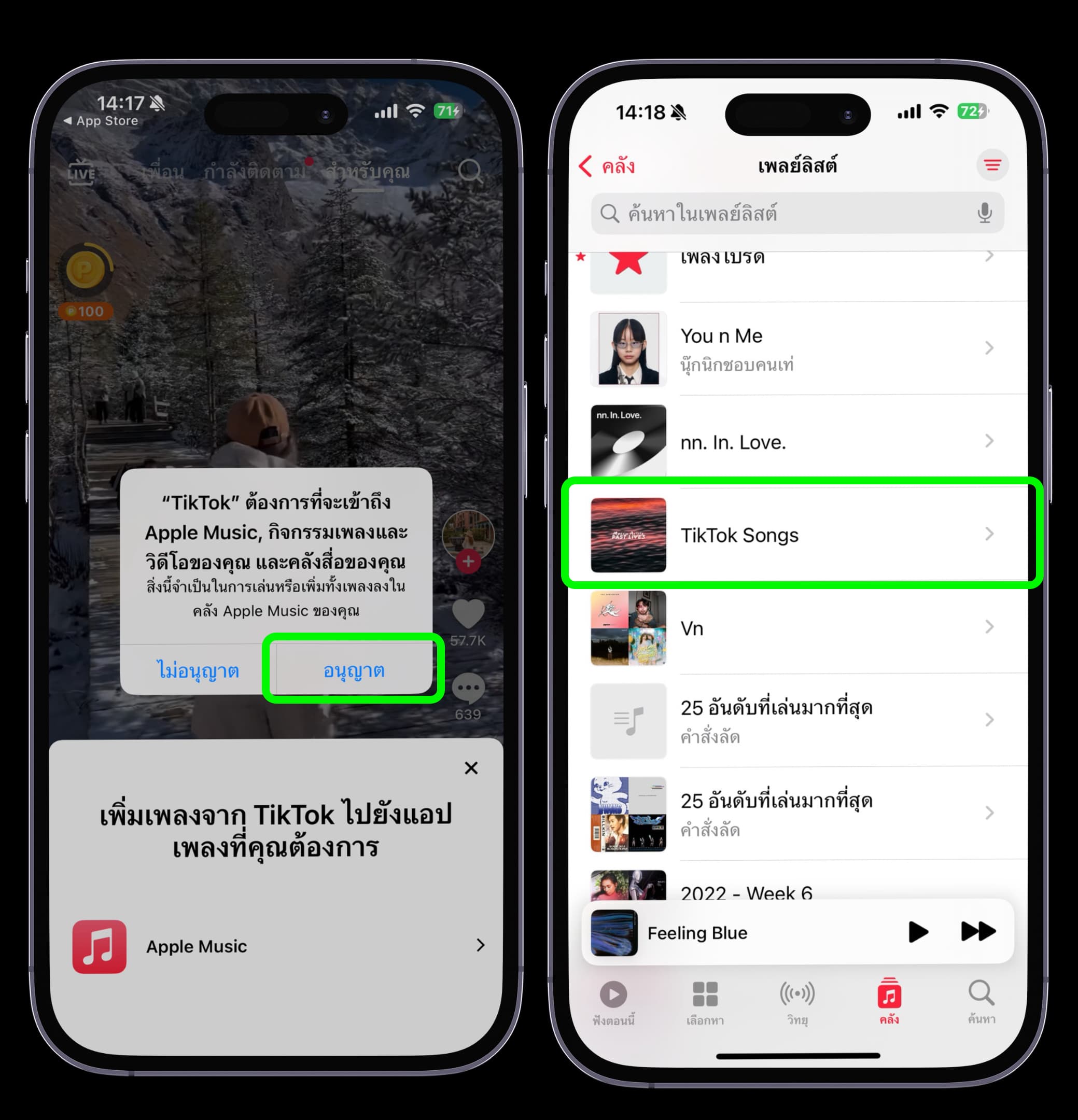 ให้ “อนุญาต” การเข้าถึงกิจกรรมก่อน จากนั้นเพลงที่เราเพิ่มก็จะไปอยู่ในเพลย์ลิสต์ที่ชื่อว่า “TikTok Songs”