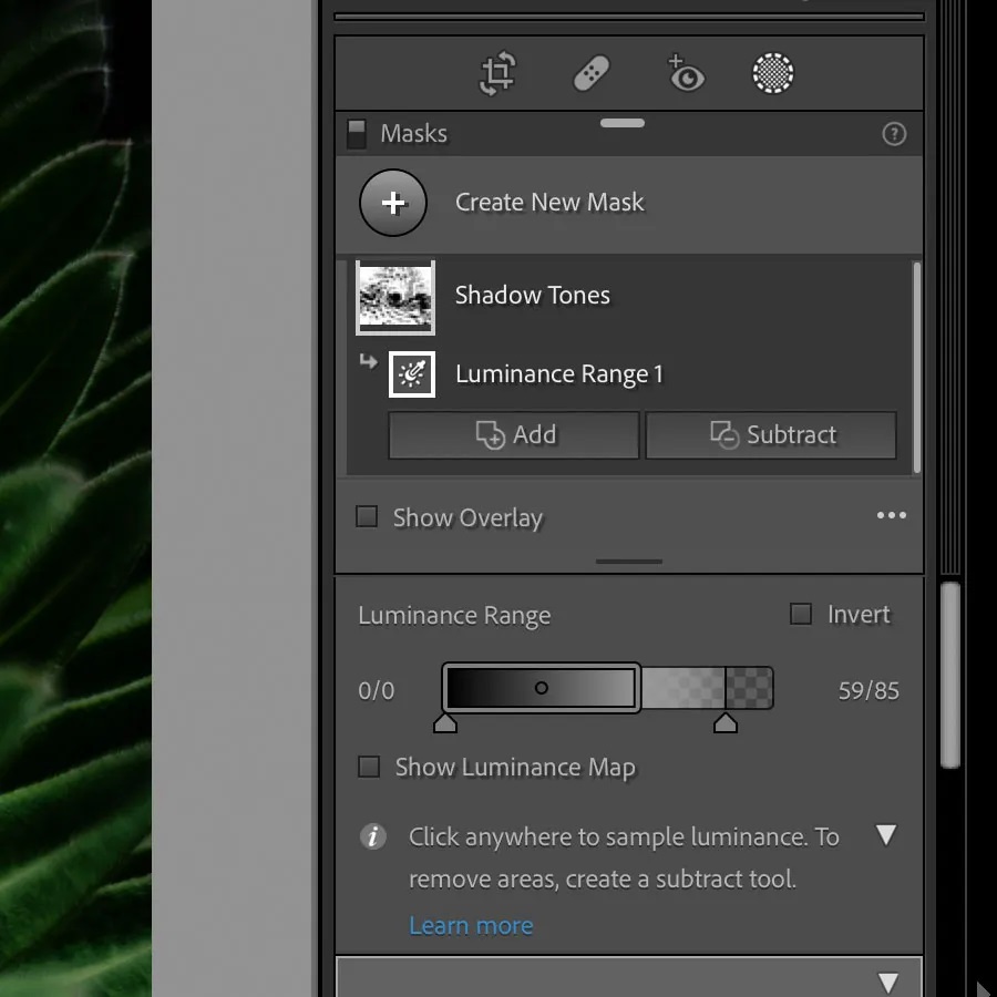 สุดท้ายเราได้รับฟังความเห็นจากลูกค้าจำนวนหนึ่งซึ่งต้องการ Range Mask ที่มีประสิทธิภาพมากขึ้น รวมถึงความสามารถในการกำหนดเป้าหมายสำหรับภาพถ่ายทั้งหมด ดังนั้นเราจึงทำให้ Range Mask สามารถทำงานในระดับที่ครอบคลุมทั้งหมด (ยังคงสามารถใช้งานภายใน Gradientเหมือนก่อนหน้านี้ โดยใช้ส่วนควบคุมการเพิ่มและเอาออก) และนำไปใส่ไว้ในโปรแกรม Lightroom สำหรับเดสก์ท็อปและโมบายล์ นอกจากนั้น เรายังได้เพิ่มเติมส่วนควบคุมสำหรับการปรับลดช่วงความสว่าง