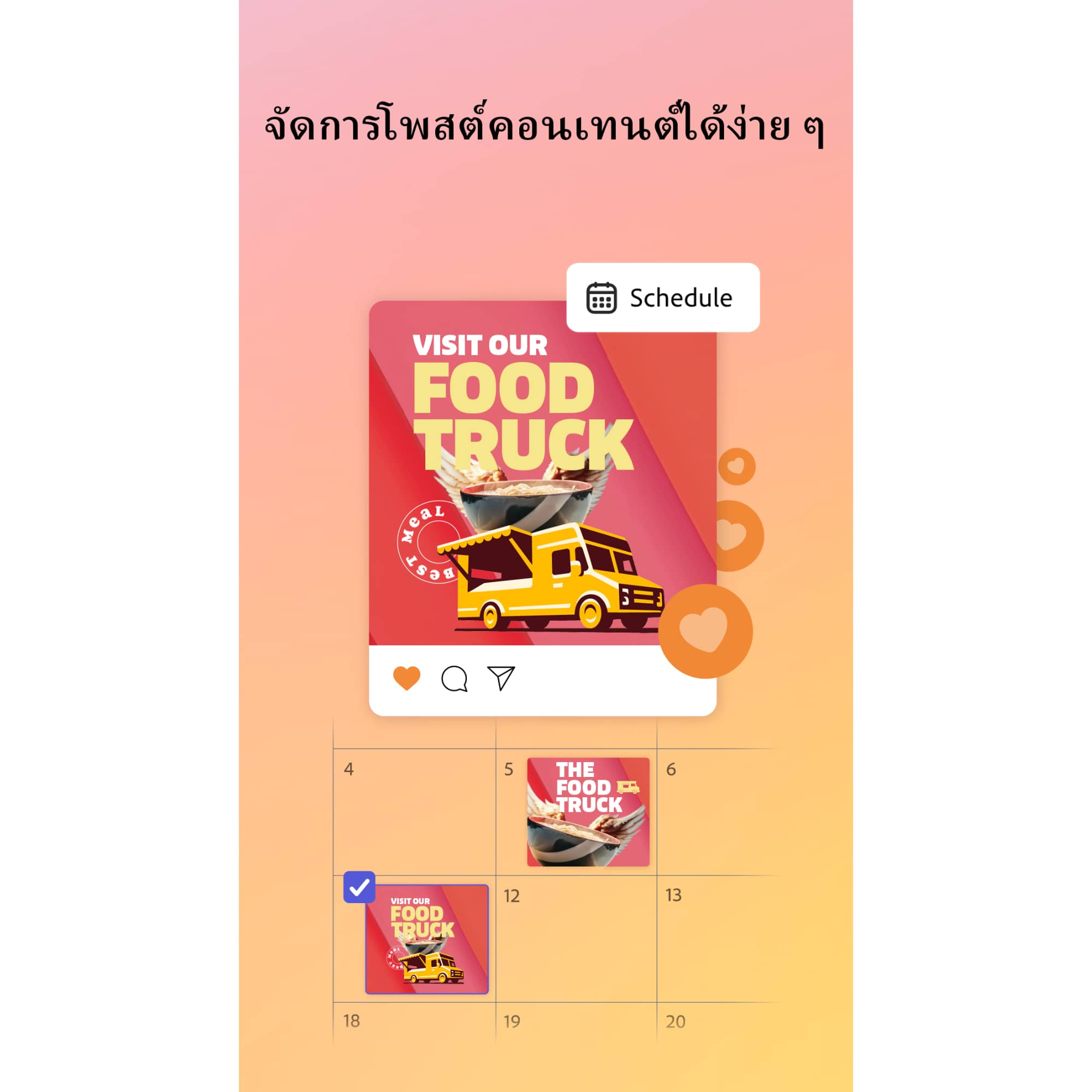 มีระบบจัดการวางแผนและสามารถกำหนดเวลาในการโพสต์รูปหรือวิดีโอไปยังโซเชี่ยลมีเดีย เช่น TikTok,เช่น TikTok, Instagram, Facebook, Pinterest และอื่น ๆ