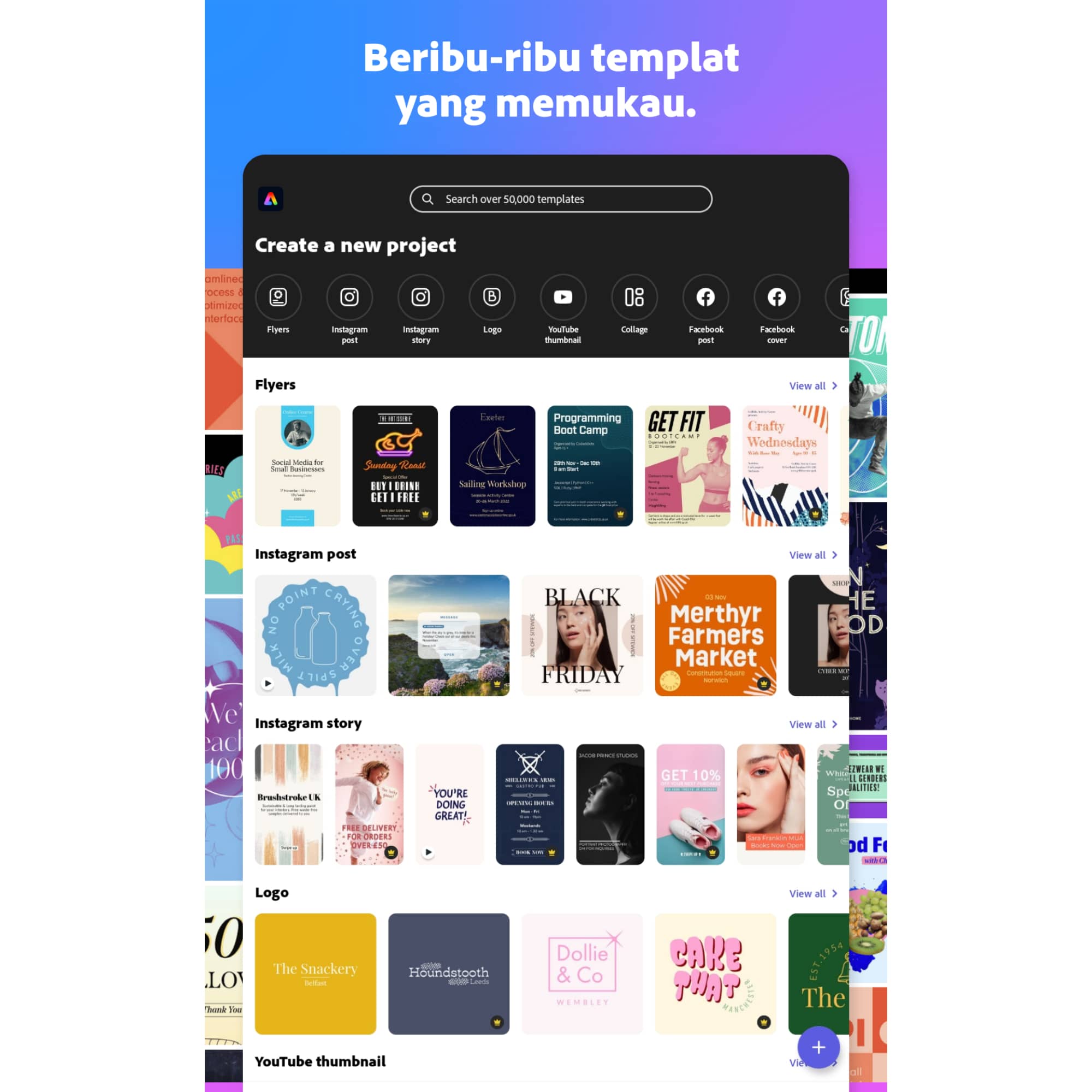 แอปได้มีการอัปเดตเพิ่มเทมเพลตทั้งรูปและวิดีโอมาให้มากมาย รวมถึงฟอนต์ตัวอักษรมากถึง 28,000 ฟอนต์ นอกจากนี้ยังสามารถแทรกวิดีโอ Adobe Stock หรือจะเป็นการแทรกเพลง ตัวแอปก็มีมาให้เหมือนกัน