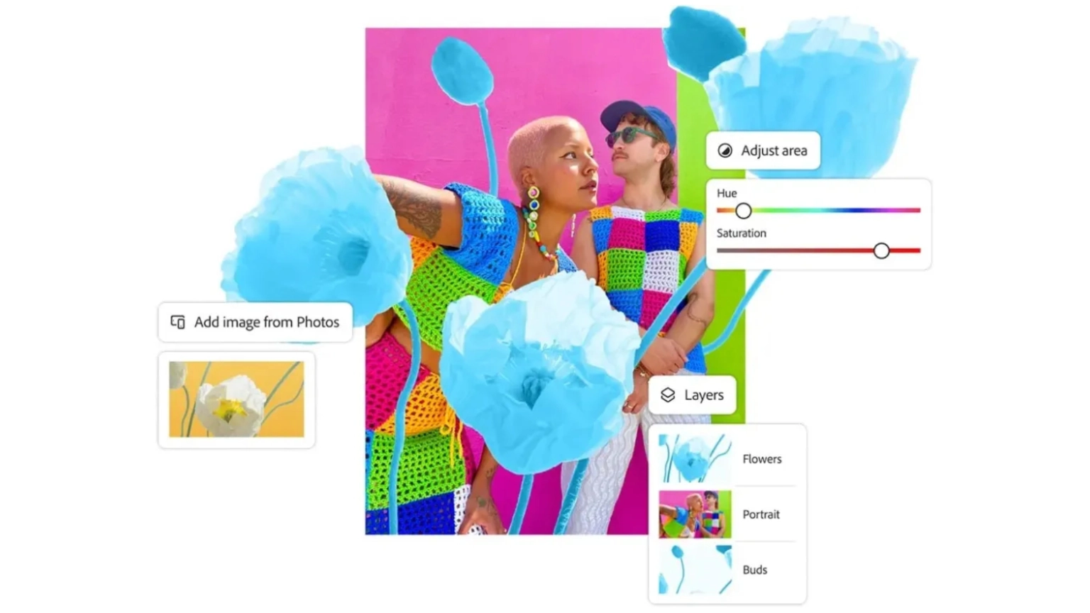- เร่งความเร็วและทำให้การแก้ไขที่ซับซ้อนง่ายขึ้นด้วยเครื่องมือ AI สร้างสรรค์ที่มีประสิทธิภาพ ซึ่งปลอดภัยสำหรับการใช้งานเชิงพาณิชย์ เช่น Generative Fill และ Generative Expand