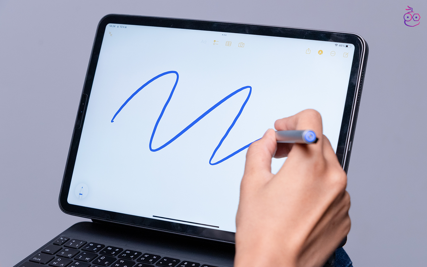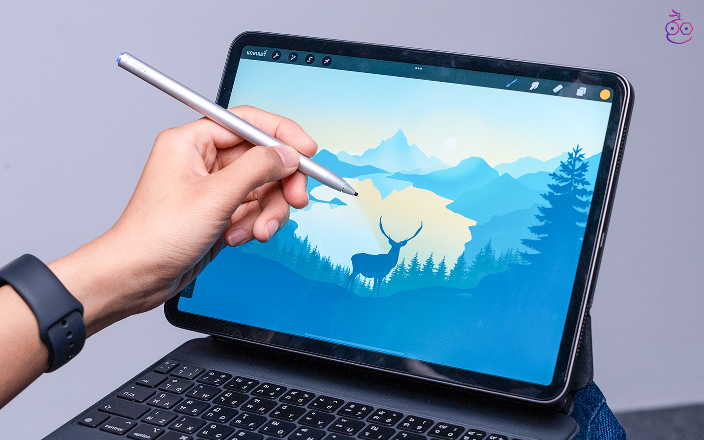ส่วนการทดลองใช้งานกับแท็บเล็ต ผู้เขียนได้ทดลองใช้งานกับ iPad Pro 2020 (11″) พบว่าสามารถขีดเขียน และระบายสีได้อย่างลื่นไหล ไม่ว่าจะเป็นแอป Note หรือแอป Procreate ก็รองรับการใช้งานได้ทันที ทั้งไฟสถานะสีเขียวและสีน้ำเงิน แต่ถ้าเป็นการใช้งานกับไฟโหมดสีน้ำเงินจะรู้สึกวาดรูปได้เต็มที่มากขึ้น เพราะมีโหมดตัดการรบกวนฝ่ามือจากหน้าจอ และที่สำคัญคือเวลาแบตปากกาหมดก็สามารถเสียบพอร์ตชาร์จ USB-C แล้วเสียบชาร์จกับ iPad หรือ MacBook โดยตรงได้เลย