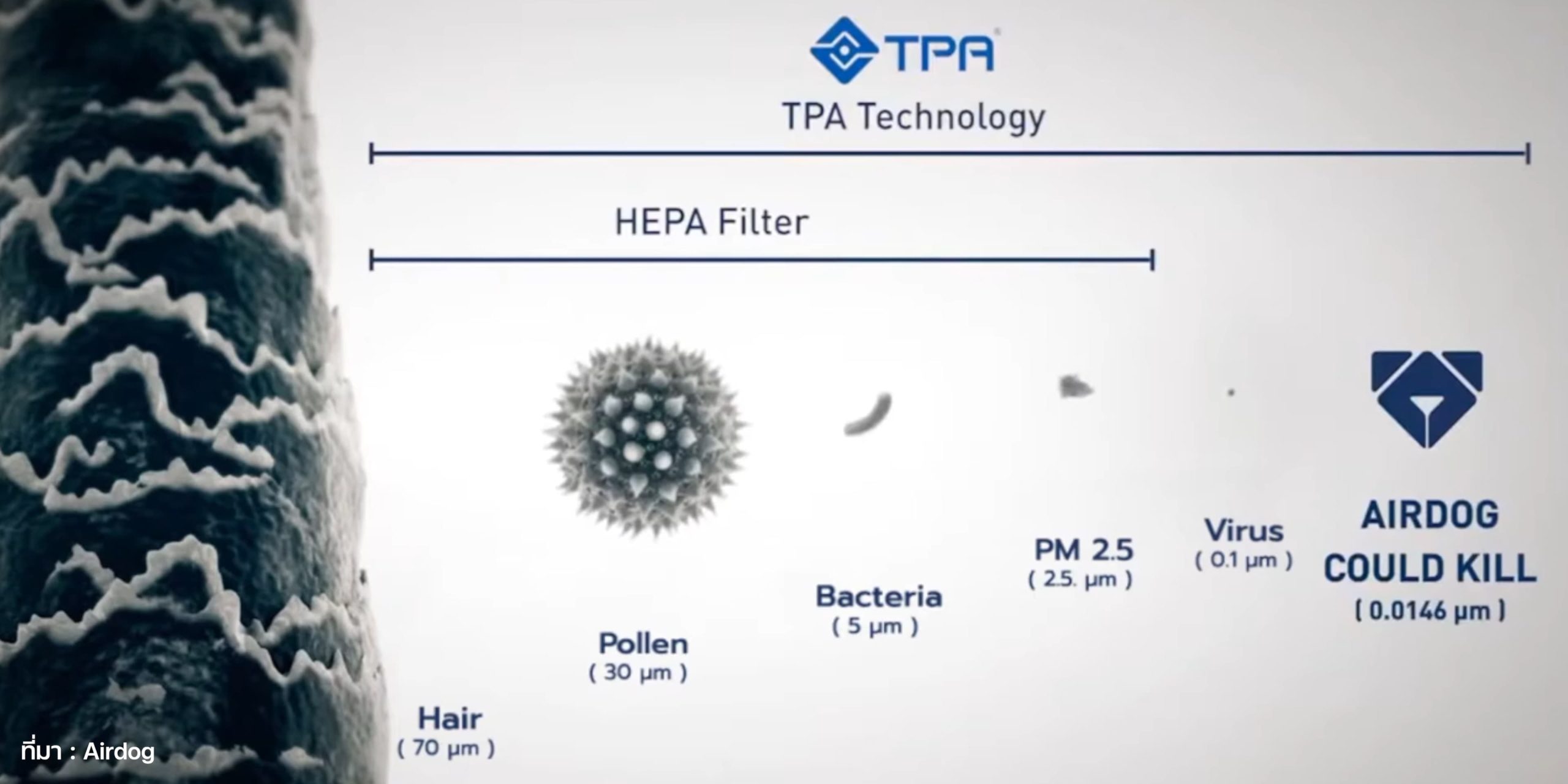 - เครื่องฟอกอากาศ Airdog X3 Pro มาพร้อมเทคโนโลยี TPA ที่มีฟิลเตอร์ 4 ชั้น กรองอนุภาคเล็กสุด 0.0146 ไมครอน ไปจนถึงอนุภาคขนาดใหญ่อย่างเส้นผม กำจัดสารพิษที่เป็นอันตรายได้ 99.9%
