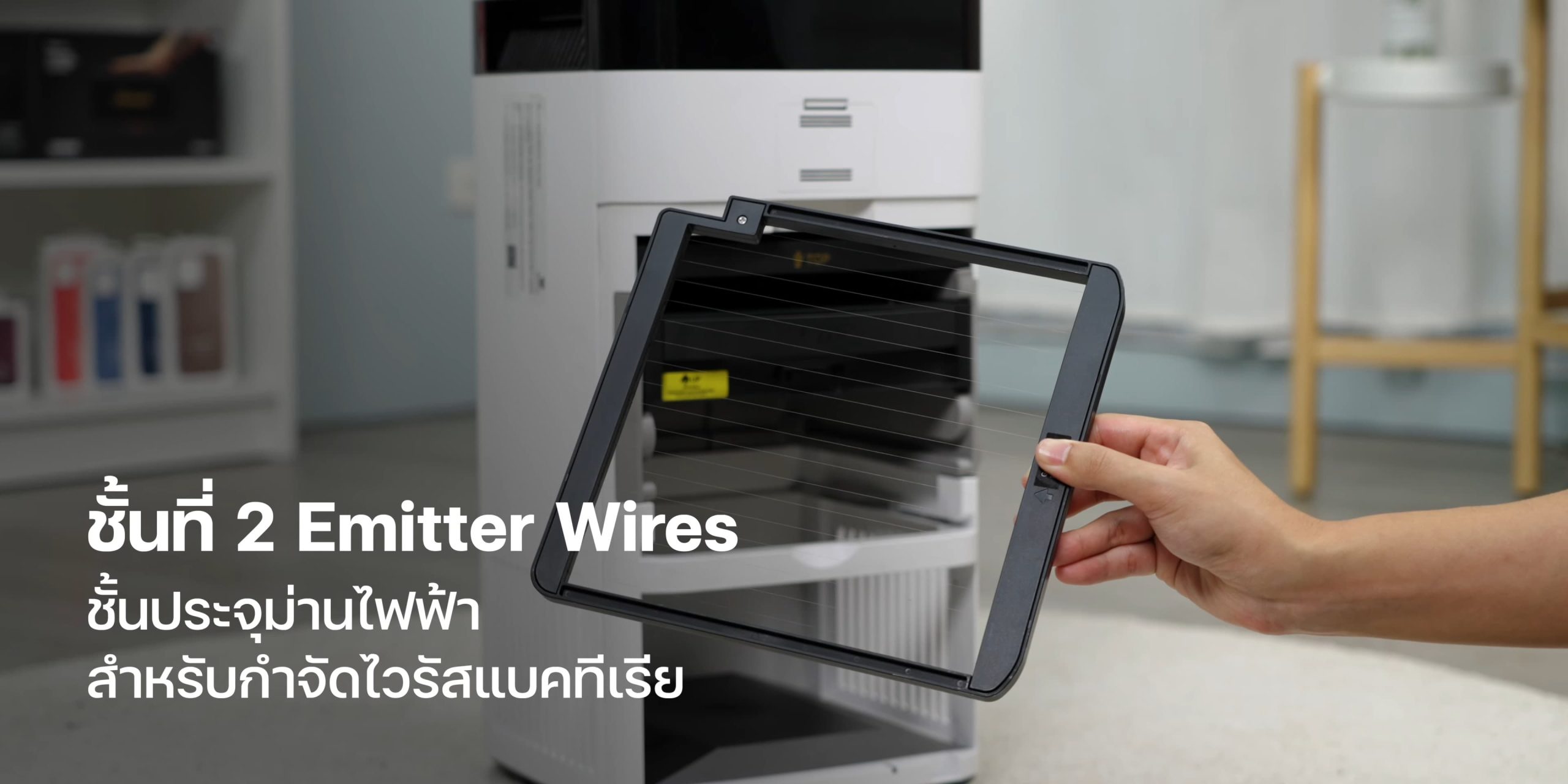 - ชั้นที่ 2 ชั้นม่านไฟฟ้า (Wireframe): ทำหน้าที่ปล่อยกระเเสไฟฟ้า 40,000 Volt เพื่อจัดการเชื้อโรคเเละเชื้อไวรัสที่มากับละอองอากาศ พร้อมกับสร้างประจุลบให้ติดตัวเชื้อโรคเเละเชื้อไวรัสชั้น