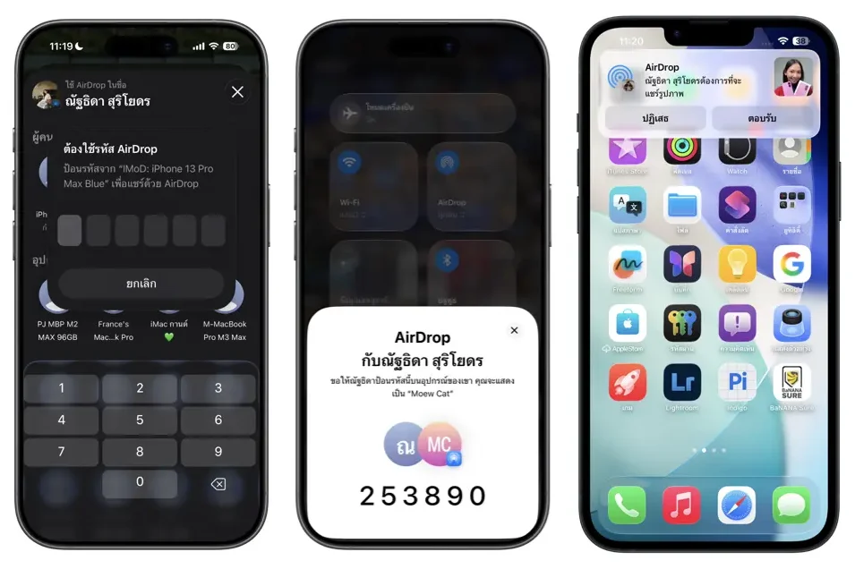 ก่อนหน้านี้ถ้าตั้งรับเป็น Everyone for 10 Minutes ทุกคนที่อยู่รอบ ๆ สามารถส่งอะไรมาที่เครื่องเราก็ได้ AirDrop Code บังคับให้ “ยืนยันด้วยรหัส” ก่อน ถึงจะส่งสำเร็จ