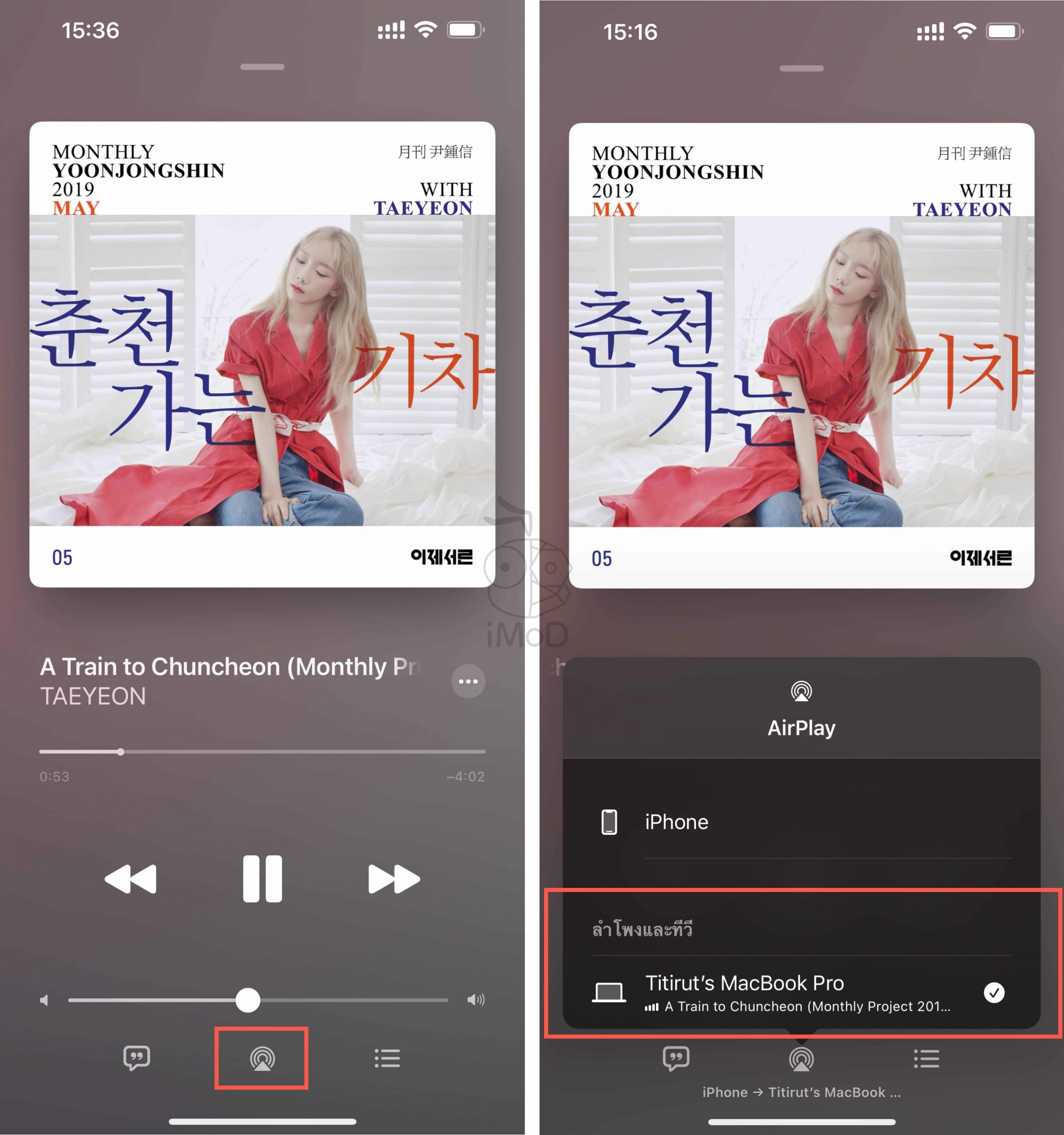 เสียงเพลงจาก iPhone ก็จะออกที่ลำโพงของเครื่อง Mac ปลายทาง และถ้า Mac เชื่อมต่อกับลำโพง เสียงก็จะไปออกที่ลำโพงตัวนั้น